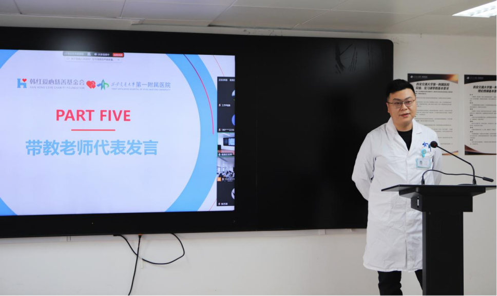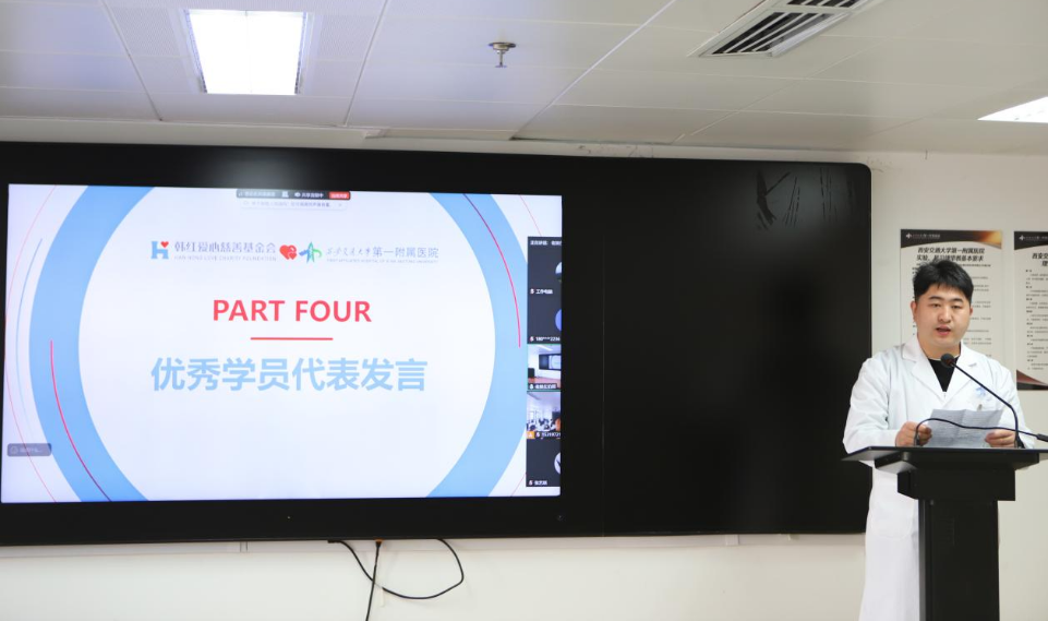 基金会代表张艺琪通过视频向学员表示祝贺,对我院作为“韩红爱心·基层医生急诊培训教学基地”发挥的示范作用给予高度评价,称赞课程设计贴近基层、管理规范高效,并强调将持续携手我院推动优质急诊资源向更广大基层地区延伸。