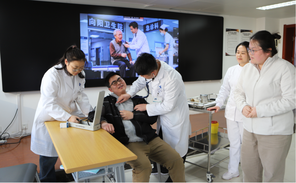 典礼现场还设置了《山乡医路》急救情景模拟环节。学员通过高度还原的基层急诊场景演练,全方位展示了应急处置与人文沟通能力,生动诠释了“仁心仁术”在急救实践中的深刻融合。