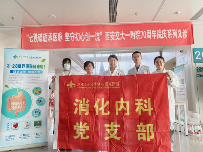 作为西安交大一附院70周年院庆系列义诊活动的一部分, 本次义诊集结消化内科、康复医学科 党员 骨干专家 团队 ,针对 慢性便秘、功能性肠病、盆底功能障碍 等常见问题,为前来咨询的市民提供免费问诊、病情评估、个性化诊疗方案制定等服务。专家们耐心倾听群众困扰,细致分析便秘成因,从 饮食调理、运动康复、排便习惯养成、规范用药 等方面给出专业建议,重点纠正 “滥用泻药”“忽视盆底肌训练”等常见认知误区。