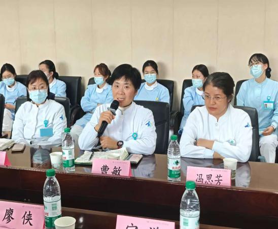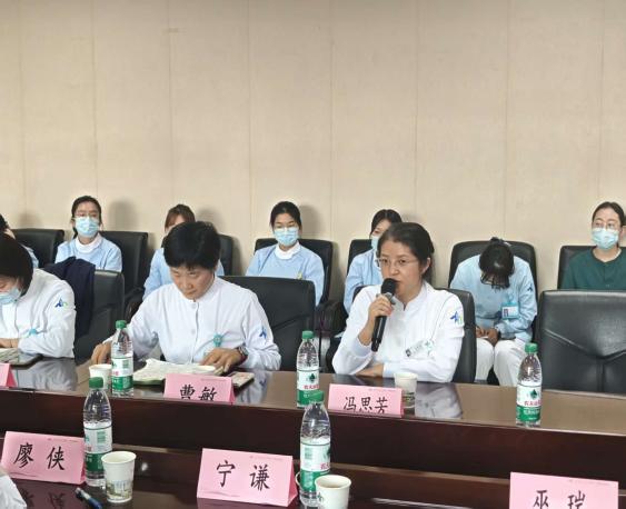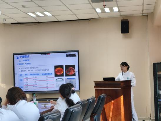 两位专科护士围绕“大咯血患者气道管理与封堵球囊护理”“心肺复苏术后脑保护策略”“危重症患者程序化脱机与康复干预”三大核心目标展开深入交流。针对封堵球囊的位置监测、间歇放气时机,亚低温治疗的温度控制与并发症预防,以及个体化营养支持方案的调整等临床难点,结合《气道腔内球囊封堵治疗咯血专家共识(2025版)》《失血性休克急救护理专家共识》等权威指南,分享了相关临床经验与应对技巧。同时,针对危重症患者院内转运的分级标准、人员物资配置及途中应急处理流程,进行了标准化梳理与优化探讨。宁谦主治医师也深入浅出的讲授了气道腔内球囊封堵术在大咯血救治中的应用与护理配合。