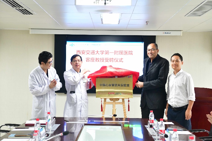 随后,袁祖贻院长、院长助理吴岳教授、Stefan Offermanns院士、王胜鹏教授四人共同揭牌,标志西安交通大学中-德心血管联合实验室正式成立。