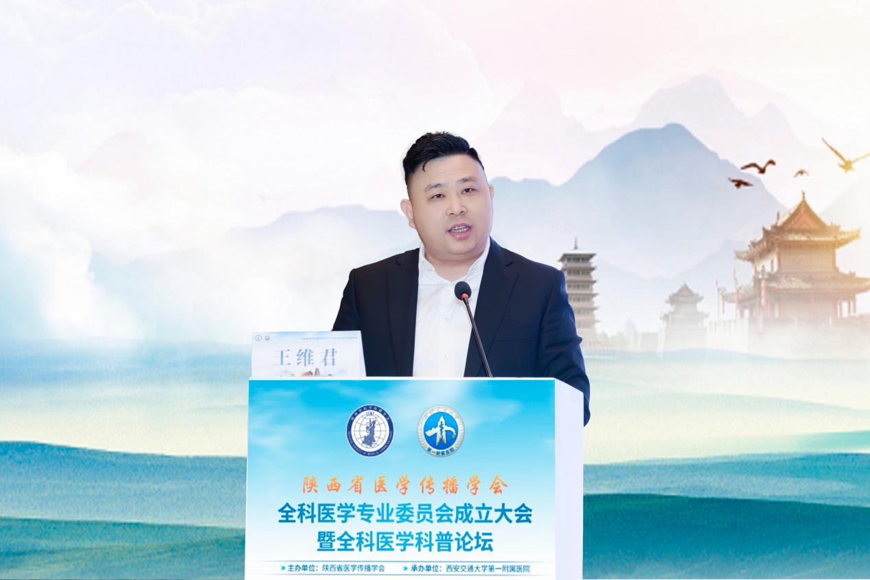 2024年11月23日,陕西省医学传播学会全科医学专业委员会成立大会暨全科医学科普论坛在西安顺利召开。陕西省医学传播学会会长李宏杰、西安交通大学第一附属医院副院长李小鹏、陕西省医学传播学会常务副会长兼秘书长王维君、首都医科大学全科医学与继续教育学院书记路孝琴、西安交通大学医学部教授韩亚丽、西安医学院第一附属医院院长于照祥、西安交通大学第一附属医院全科医学科主任张玮、陕西省医学传播学会常务副秘书长杨俊超等领导、专家出席大会。