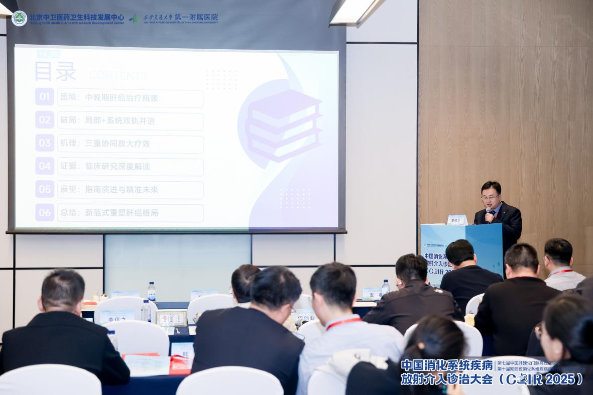 成立仪式后,紧接着召开了精彩纷呈的第一届学术会议:空军军医大学西京医院消化病院院长韩英深入剖析了《PBC患者门脉高压的评估与干预时机》;中国医科大学附属第一医院邵海波教授以《钇90-SIRT的临床应用》为题,展示了复杂肝癌病例的精准治疗;山东第一医科大学附属省立医院王广川教授《胃底静脉曲张的介入治疗》,进一步强调了介入治疗在胃底静脉曲张中的治疗效果;陕西省人民医院陈思攀教授分享《机械血栓清除治疗急性肠系膜上动脉血栓中的应用体会》;通用医疗三二O一医院赵永昌教授分享《急症消化道出血介入治疗;空军军医大学西京医院安睿教授分享《TACE联合HAIC治疗在中晚期肝癌中的应用》;西安市第三医院何创业教授分享《小分流,大作为》;专委会新任主任委员西安交通大学第一附属医院李伟之教授分享《TACE联合T+A破局肝癌诊疗困境》,为中晚期肝癌的综合治疗打开新思路。学术会议分别由王义清教授、陈士新教授、罗中华教授等主持,现场学术氛围浓厚,讨论热烈。