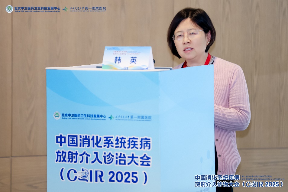 西安市研究型医院学会副会长钱露院长出席大会并致辞。钱露副会长对消化介入专业委员会的成立表示热烈祝贺,并指出,消化系统疾病的介入诊疗是现代医学发展的重要方向,融合了内科诊断的精确性与介入治疗的微创优势。她希望专委会能够充分发挥平台作用,整合优质资源,推动多学科协作,积极开展高水平临床研究、技术规范制定及基层医师培训工作,全面提升西安市消化介入领域的整体水平,更好地服务于广大患者。