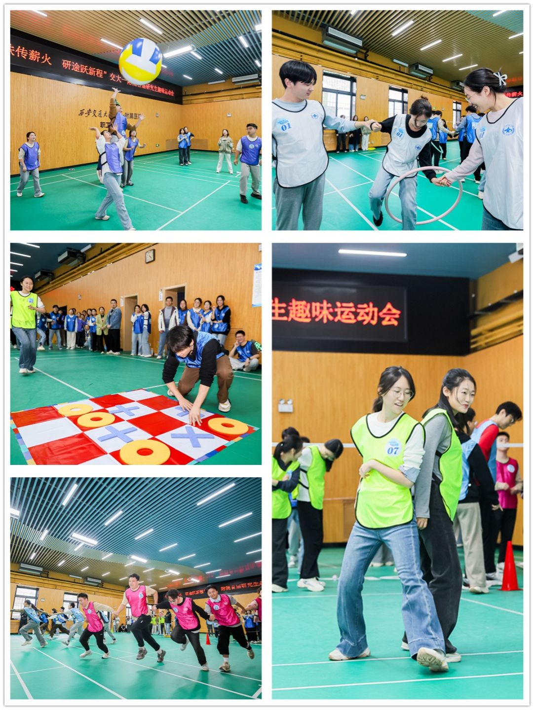 本次趣味运动会设置了融合竞技、协作与智慧于一体的五个趣味项目,各参赛队伍在比赛中团结协作、奋勇争先,现场气氛热烈,秩序井然。在“修狗快跑”项目中,队员们两人一组背靠背夹紧“修狗玩偶”,在紧张而有趣的接力中默契配合,偶有玩偶掉落引发阵阵欢笑,更显团队协作的真挚与可贵;“雪球滚滚”项目考验持续接力与全员协同,队员们手拉手不断“滚”入新成员,形成一道流动的风景,展现了集体节奏与步调的高度统一;在“一圈到底”项目中,各队队员手拉手站成一列,灵活运用身体传递呼啦圈,禁止用手的规定增添了挑战,也激发了创意与协作的无限可能;“棋逢对手”将运动与策略巧妙结合,队员们不仅要快速奔跑落子,更要在棋盘上展开智慧博弈,四子连珠的瞬间引来阵阵喝彩;在压轴项目“气排争锋”中,各队用手托举,拍打充气足球,你来我往、攻防有序,将现场气氛推向高潮。