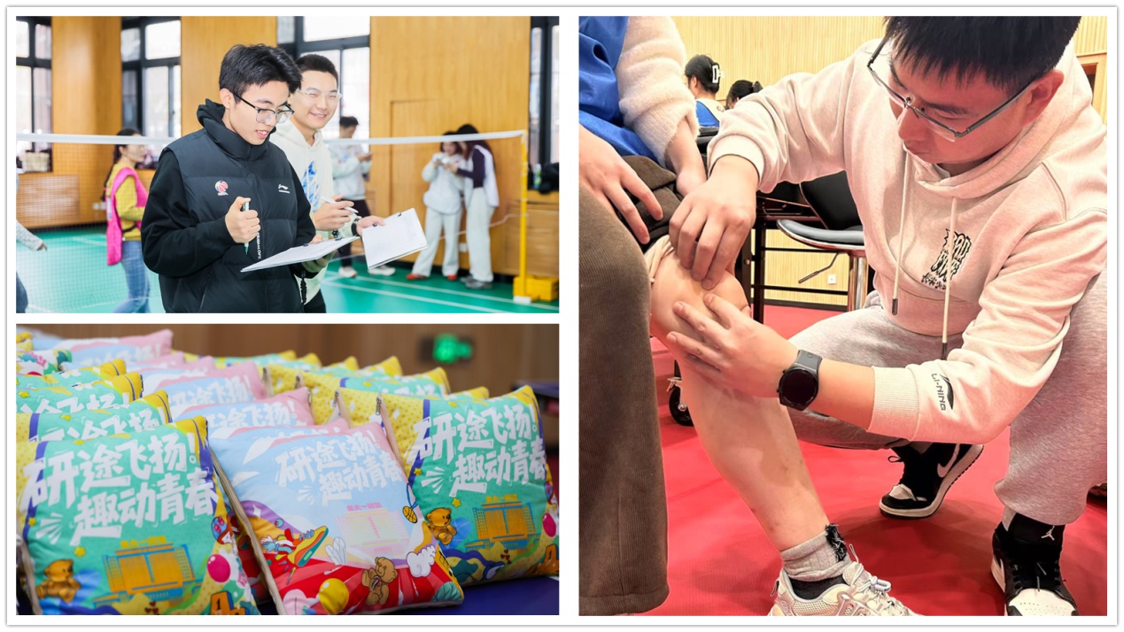 为保障活动顺利进行,学工办特邀我院康复医学科医疗团队全程为参赛选手提供运动康复保障。活动现场还贴心准备了食品与饮用水,供参赛选手及时补充能量,营造出温馨有序、充满关怀的比赛氛围。由学生志愿者组成的工作团队分工明确、高效协作,承担了赛事引导、裁判辅助、物资分发等工作,为运动会的顺利举办提供了有力支持。