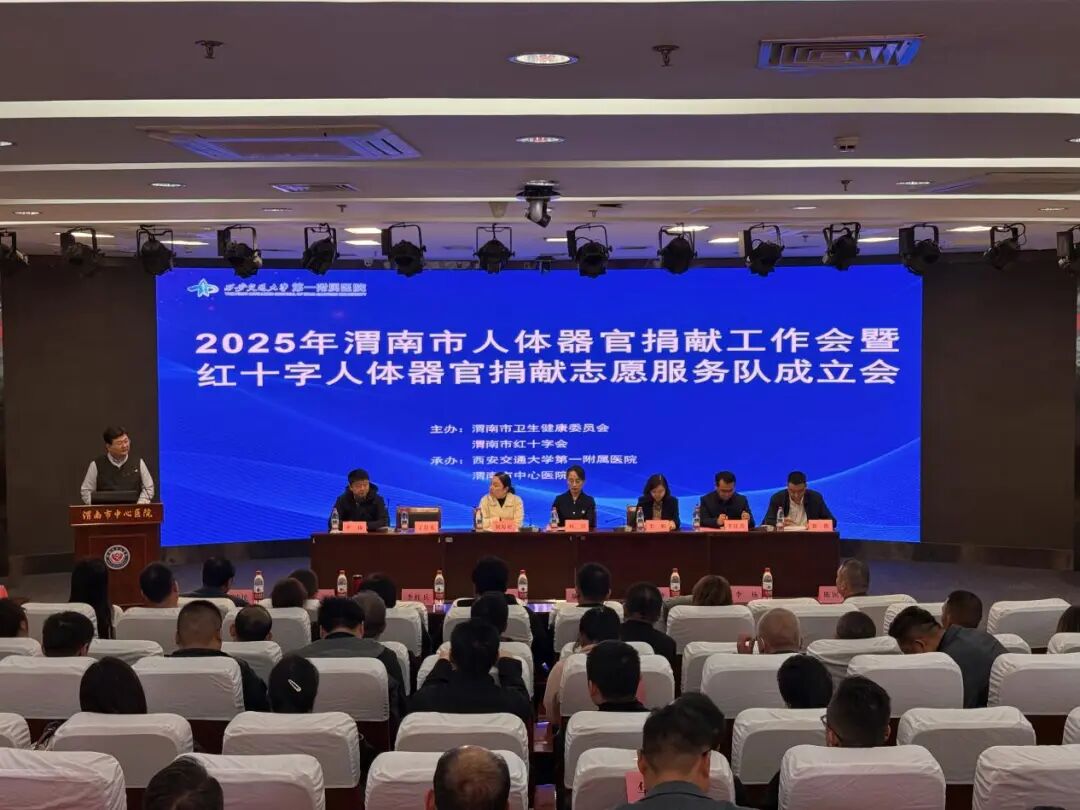 2025年11月13日下午,由渭南市卫生健康委员会、渭南市红十字会联合主办,西安交通大学第一附属医院、渭南市中心医院共同承办的“2025年渭南市人体器官捐献工作会暨红十字人体器官捐献志愿服务队成立会议”在渭南市中心医院顺利召开。