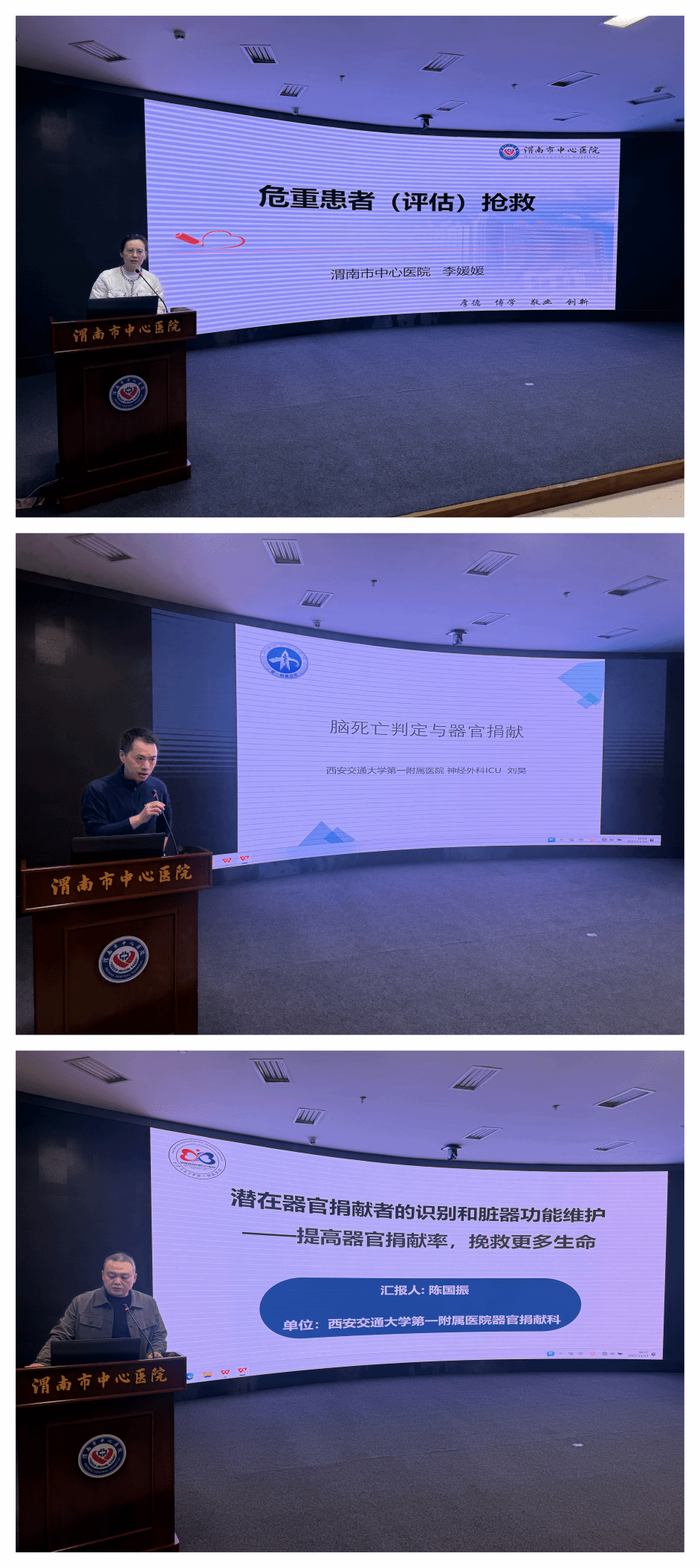 渭南市中心医院重症医学科副主任李媛媛教授、西安交通大学第一附属医院神经外科刘昊教授、器官捐献科(OPO)陈国振教授分别围绕急危重症病人的抢救与维护、脑死亡的判定现状和标准以及潜在捐献者早期识别与处理进行了培训。