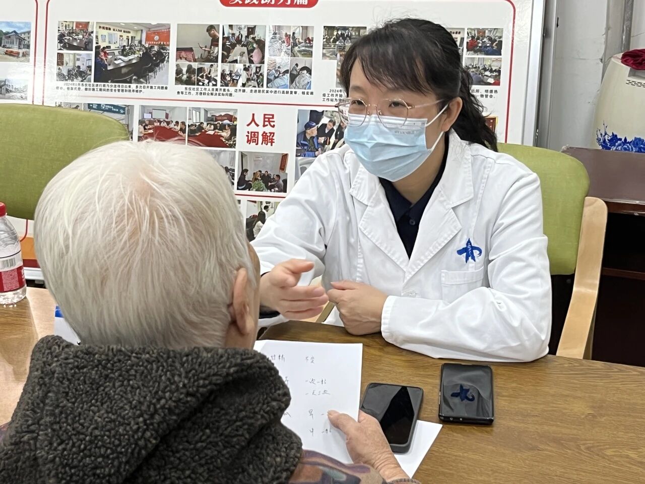 义诊现场,来自我院多个科室的专家发挥各自专业特长,为居民提供了全方位的健康服务:生活方式医学门诊许庆丽主任医师着重指导非药物控糖方法;老年内分泌代谢科许静副主任医师与石静主治医师共同负责糖尿病及其并发症的综合评估与诊疗建议;周围血管科孟燕副主任医师重点筛查与防治糖尿病足等血管问题;眼科齐赟主治医师为居民进行眼底病变检查并提供护眼方案;肾内科兰平主治医师则关注肾脏健康风险,给出针对性保护意见。此外,庞瑛护士长带领的护理团队现场为居民测量血糖、血压,并解答日常管理中的实际问题。各位专家耐心细致、讲解清晰,其专业的素养与亲切的态度赢得了居民们的广泛赞誉。