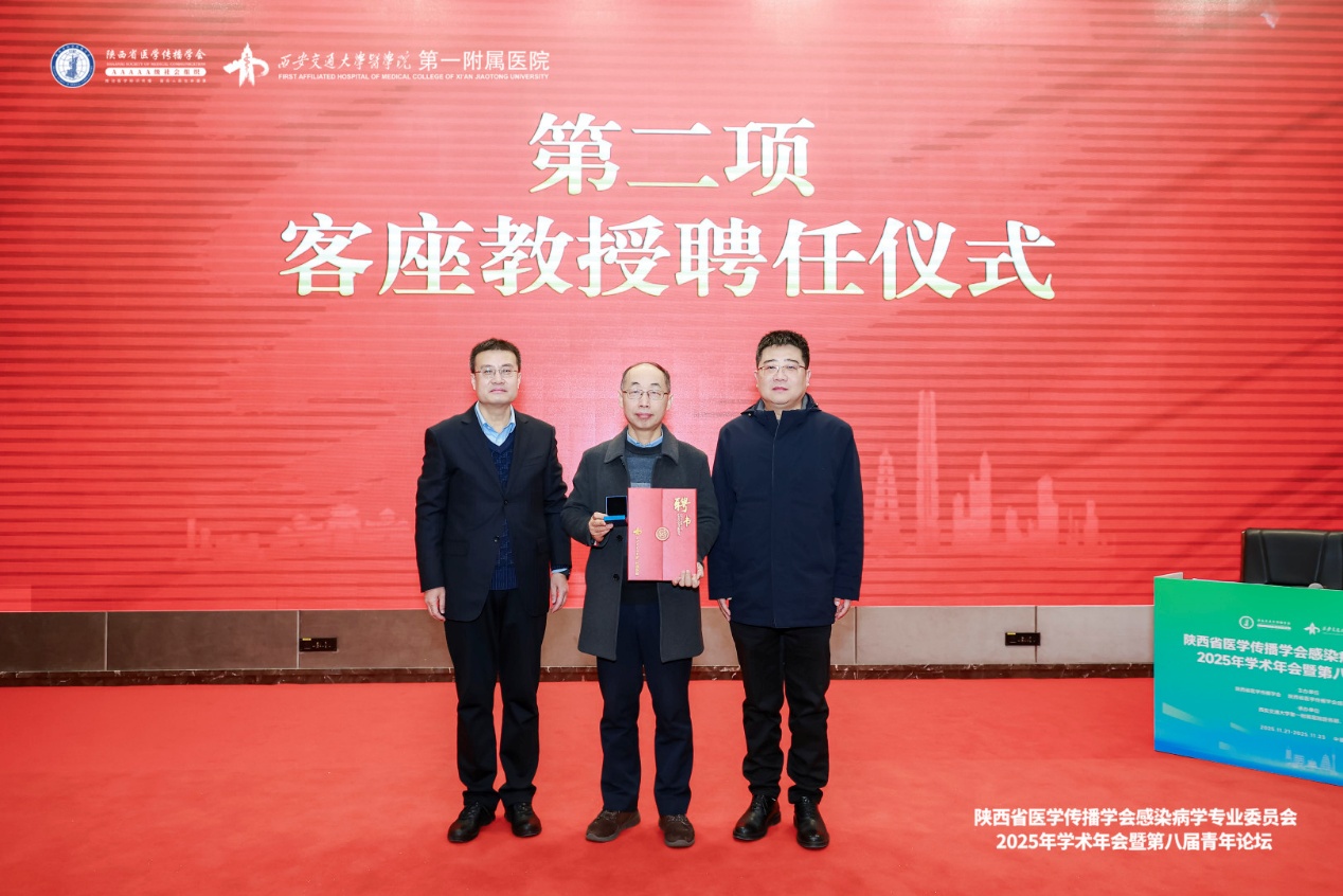 2025年11月23日,西安交通大学第一附属医院感染科客座教授聘任仪式在医院科教楼301会议室隆重举行。我国著名噬菌体学与病毒学专家、北京化工大学生命科学与技术学院院长童贻刚教授正式受聘为该院感染科客座教授。医院党委冯广林书记出席仪式并致辞,感染科何英利主任主持仪式。