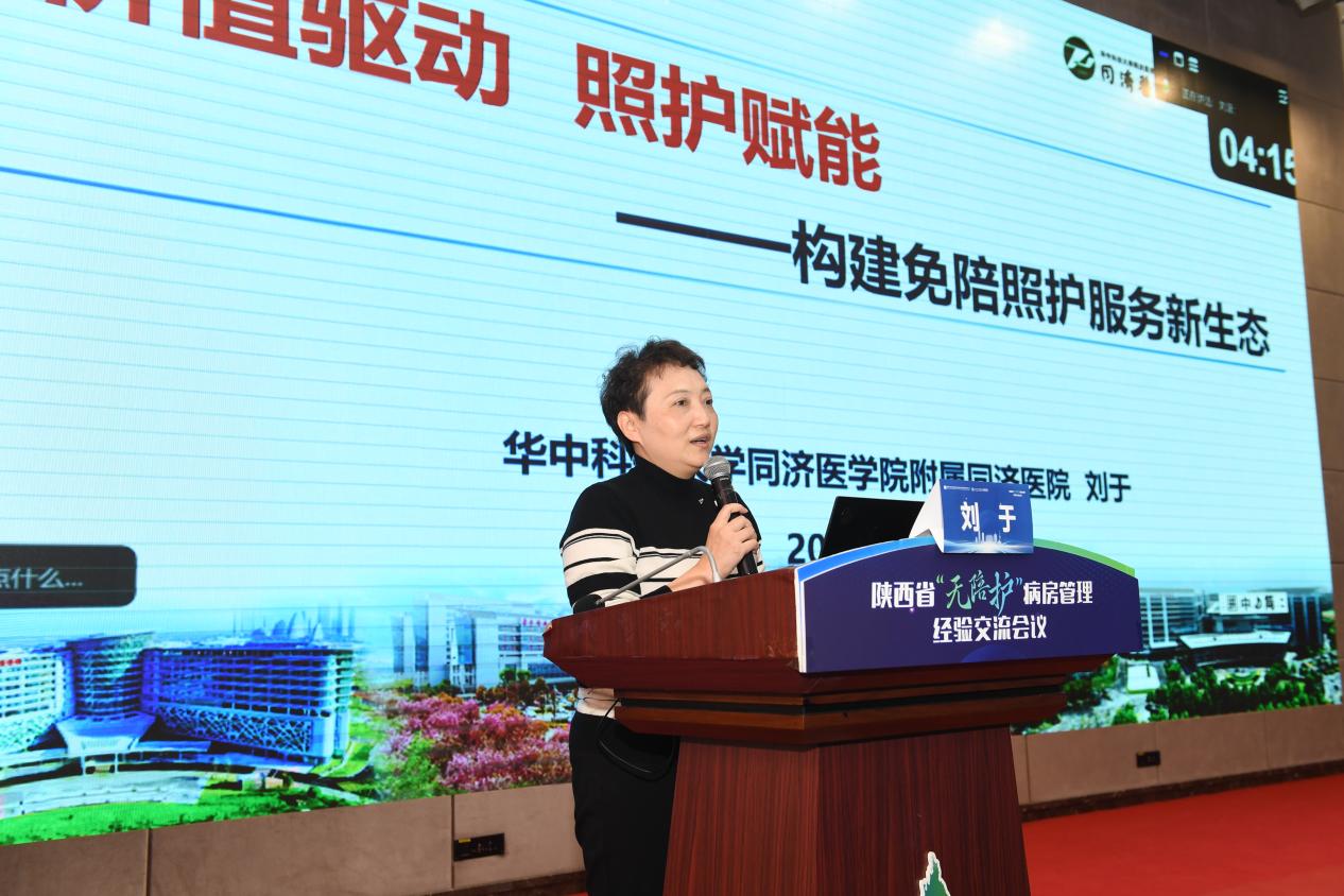 专题培训环节由西安交通大学第一附属医院护理部李洁琼主任主持。特邀华中科技大学同济医院护理部副主任刘于以《价值驱动照护赋能——构建免陪照护服务新生态》为题,分享了“无陪护”病房建设方面的管理模式与实践经验,为陕西同行提供了宝贵借鉴。