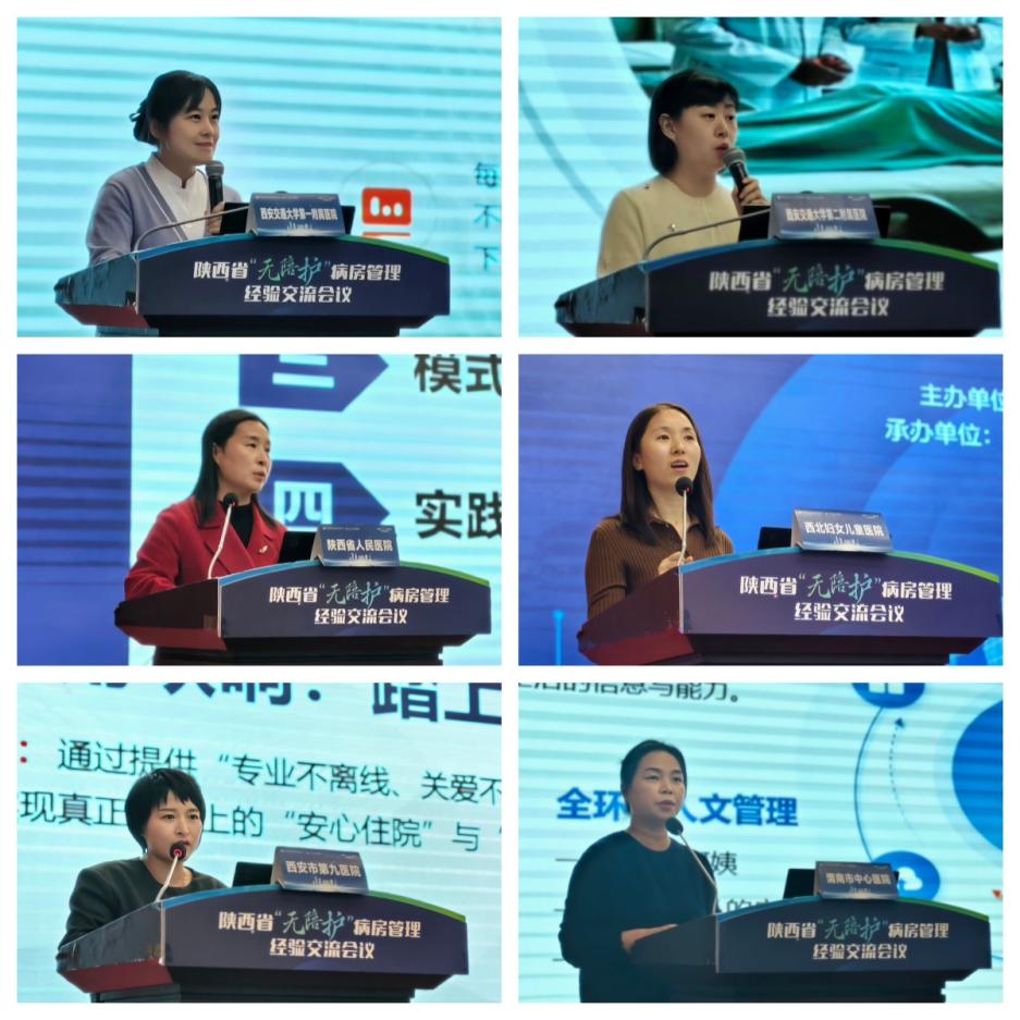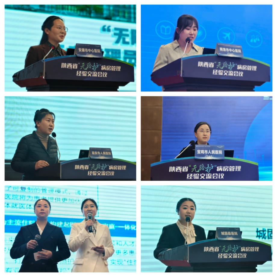 空军军医大学第一附属医院胡雪慧主任护师主持经验分享环节。智慧源于实践,经验贵在分享。前期省护理质控中心发起的全省“无陪护”病房管理经验征集活动,共收到来自7个地市、23家医疗机构提交的50份总结报告,经专家审核,遴选出13家单位(西安交通大学第一附属医院、西安交通大学第二附属医院、陕西省人民医院、西北妇女儿童医院、西安市第九医院、延安市人民医院、渭南市中心医院、宝鸡市人民医院、汉中市中心医院、安康市中心医院、商洛市中心医院、镇安县医院、城固县医院)进行了现场分享交流。