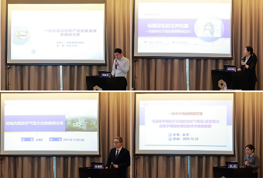 本次病例解析会打破传统汇报模式,以“沉浸式研讨”为核心亮点。四个极具代表性与挑战性的麻醉病例依次亮相:空军军医大学第一附属医院刘高伟医生带来“一例全麻诱导期严重低氧血症病例分析”,剖析危急时刻的应对策略;空军军医大学第二附属医院谢彤昕医生分享“纵膈深处的无声风暴——一例副神经节瘤的麻醉管理启示”,解锁特殊病种的麻醉管理策略;西安交通大学第一附属医院杜海亮医生聚焦“呼吸内镜诊疗气道大出血病例”,探讨麻醉下呼吸内镜诊疗过程中发生凶险并发症的处置要点;西安交通大学第一附属医院赵莎医生围绕“术中唤醒患者麻醉管理”展开汇报,解析可视喉罩辅助纤支镜的气管插/换管技术应用于颅脑肿瘤切除术中唤醒麻醉管理再创新策略。