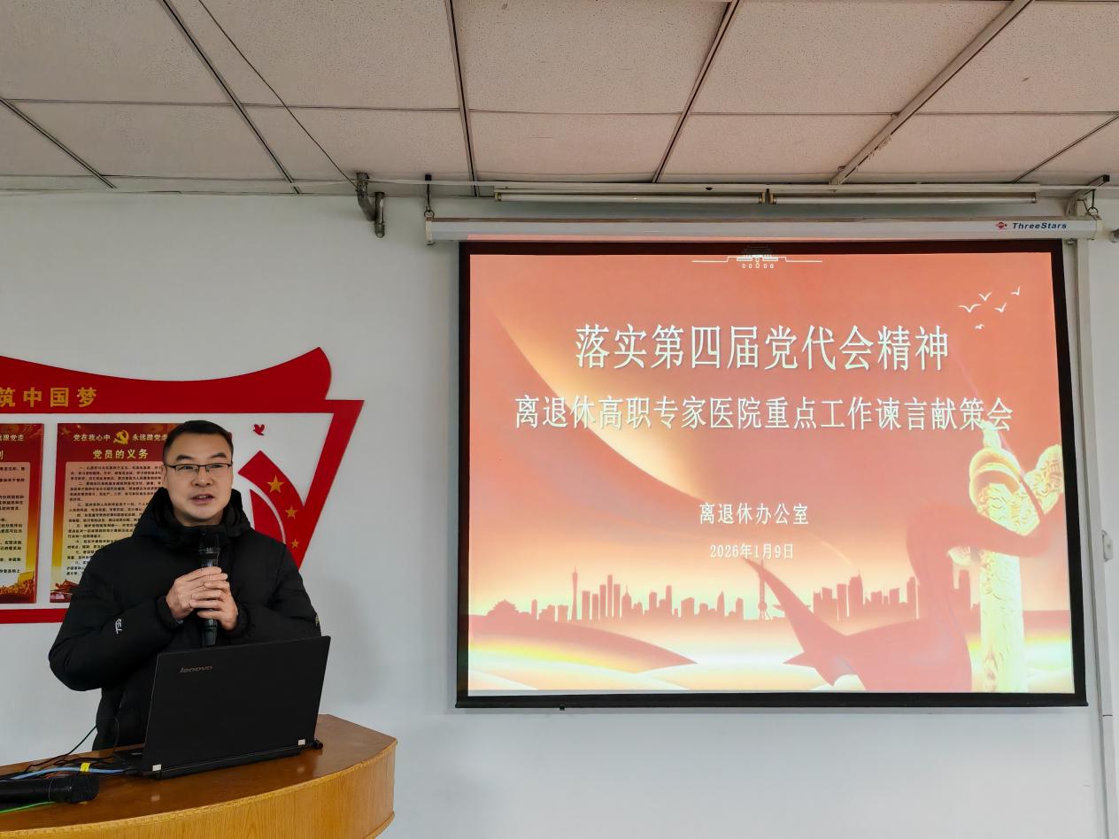 会议首先由院党委一级组织员、院工会主席韩菊同志就医院2025年重点工作完成情况、面临的困难及2026年重点工作思路和现场高职老专家老教授进行了详细通报。