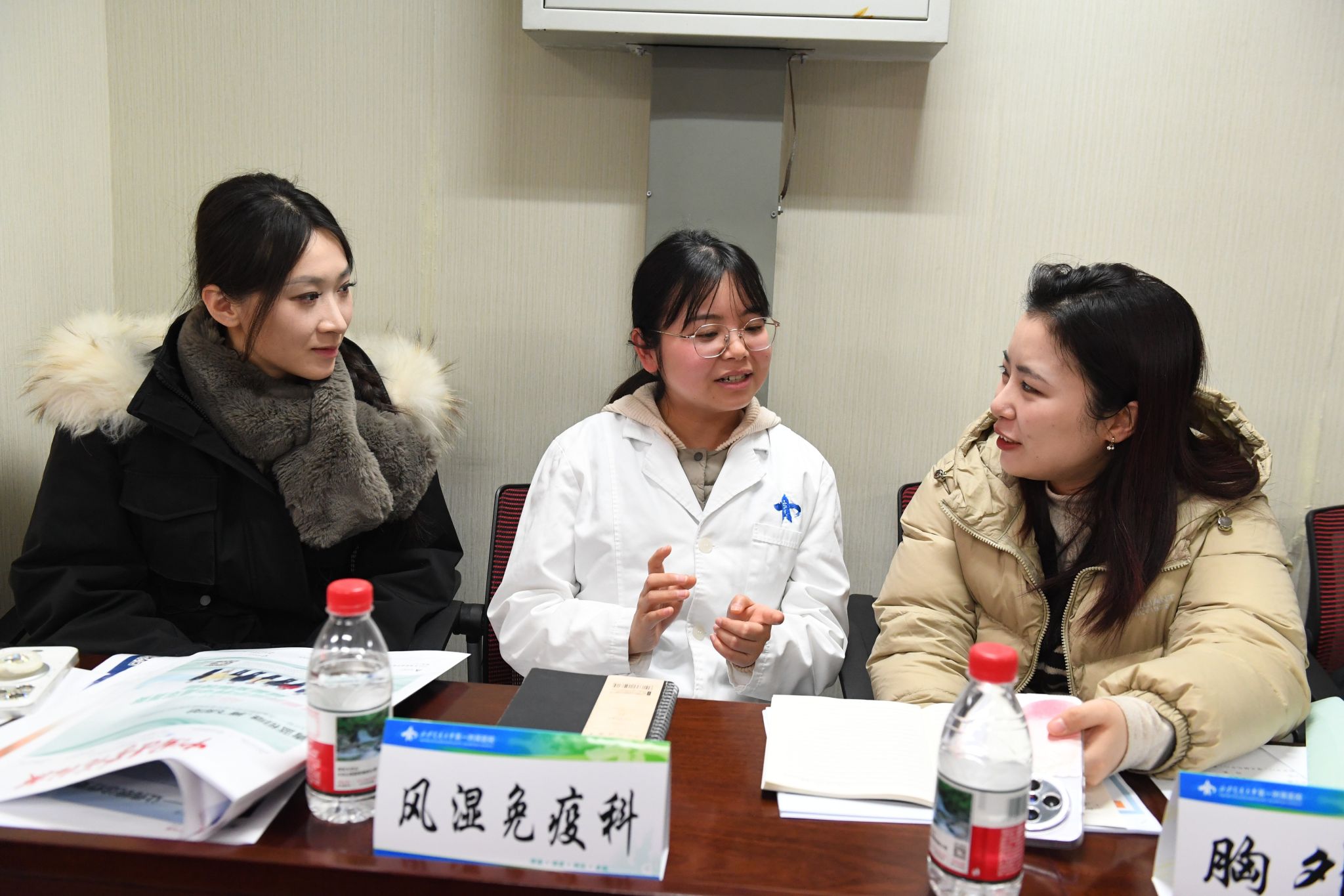 在随后的专项对接访谈中,报社各中心主编、编辑与我院皮肤科、感染性疾病科、胸外科、内分泌科、肾内科、心血管内科、神经内科、消化内科、重症医学科、急诊科、精神心理卫生科、妇产科、呼吸内科、泌尿外科、心血管外科、风湿免疫科、药学部、血液内科、生殖医学科、医务部等二十个临床与职能科室的负责人,就学科宣传重点、临床科研故事挖掘、专家观点传播、科普内容创作、医管经验分享等具体议题进行了“一对一”或“小组式”的务实探讨。