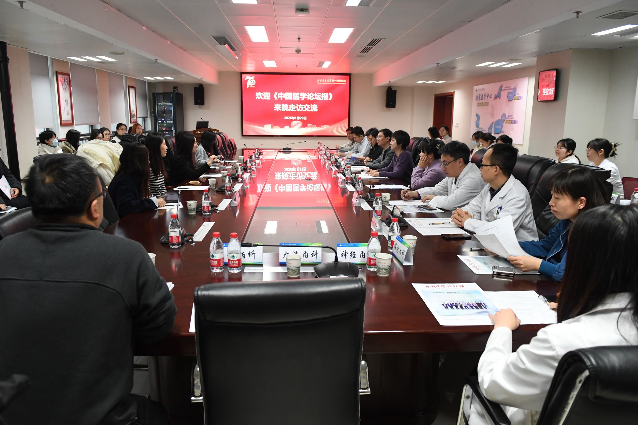 1月29日上午,《中国医学论坛报》副总编刘娟一行二十人来院进行学术走访交流。医院党委副书记兼纪委书记梁志静、宣传部部长王睿、副部长刘炳圻及相关临床科室与职能部门主要负责人共聚一堂,围绕医学传播、学术共建、医院品牌建设等议题展开深入交流。活动由王睿部长主持。