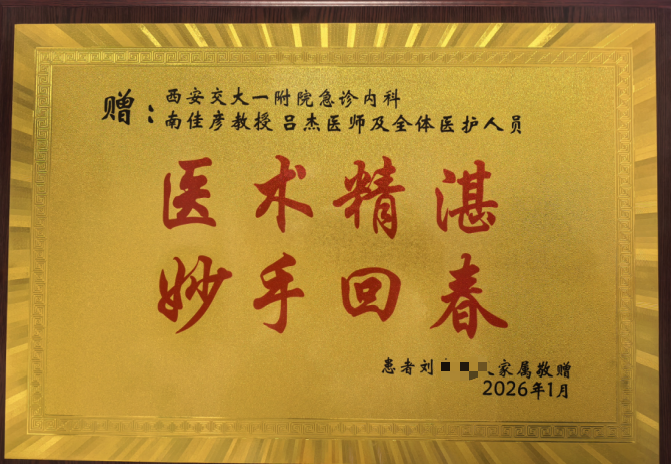 目前,患者恢复良好,1月29日家属特地送来牌匾表达感谢。此次极高危心梗患者的成功抢救,充分彰显了我院急诊科应对急危重症的强大应急处置能力、成熟高效的多学科协作机制,更彰显了全体医护人员“人民至上、生命至上”的坚定职业信念。他们以精湛的专业技术为刃,以迅捷的应急反应为盾,以无私的奉献精神为基,在生死竞速中再次跑赢时间、守护生命,用实际行动诠释了医者仁心的责任与担当,为全体参与救治的医护人员点赞!