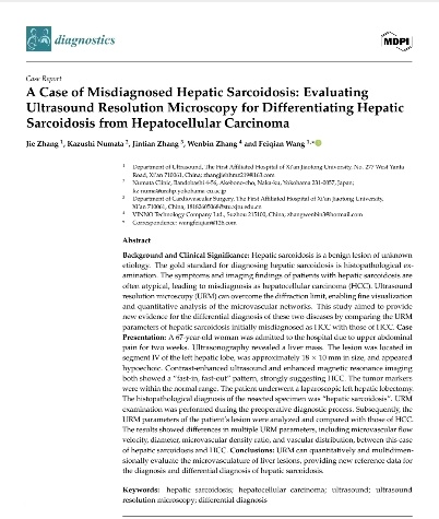 本次参赛病例为一例极具代表性的肝脏结节病超声超分辨显微成像病例,由王斐倩教授精心选择并指导同等学力研究生李小静医师进行汇报。值得一提的是,该病例的研究成果已于国际期刊《Diagnostics》(影响因子3.3)上发表为个案报道,并入选亚洲超声医学与生物学联合会(AFSUMB)高端国际会议壁报展示,展现了该病例的学术价值与国际影响力。