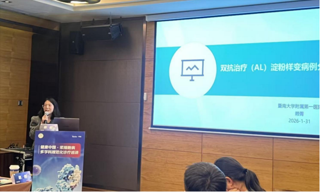 暨南大学附属第一医院血液内科赖菁教授分享了《双特异性抗体在AL淀粉样变中的应用案例分享》,陕西省人民医院血液内科副主任连小赟教授担任主持。这一报告聚焦浆细胞疾病治疗领域的最前沿进展,为临床医生提供了新的治疗思路和方法。免疫治疗的发展正在改变浆细胞疾病的治疗格局。随着单克隆抗体及双特异性抗体等新型免疫疗法的不断发展,浆细胞疾病的治疗目标已从过去的延长生存期转向追求深度缓解乃至功能性治愈。