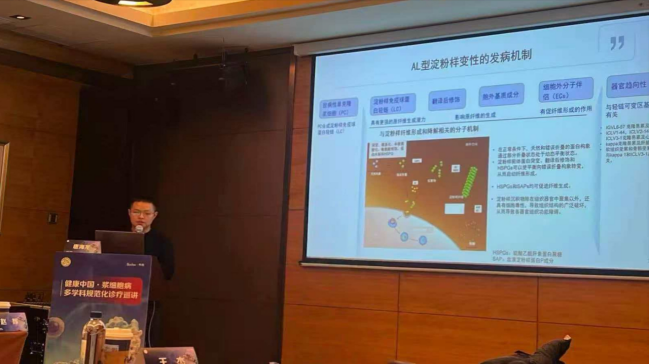 随后的学术议程紧凑而充实。首位讲者,来自北京大学第一医院神经内科的孟令超教授,带来了《神经内科视角下的AL型淀粉样变性》的专题演讲,陕西省罕见病质控中心血液罕见病专家组组长、西安交通大学第一附属医院血液内科刘华胜教授主持该环节。孟令超教授从神经内科临床实践切入,精彩演绎了AL淀粉样变性神经系统受累(尤其是周围神经与自主神经)的诊疗全貌。他精准指出自主神经病变是此病的核心识别难点,并生动解析了肌肉活检技术的优化策略与独特优势,其前瞻性视角令与会者印象深刻,有效激发了多学科的思想碰撞。