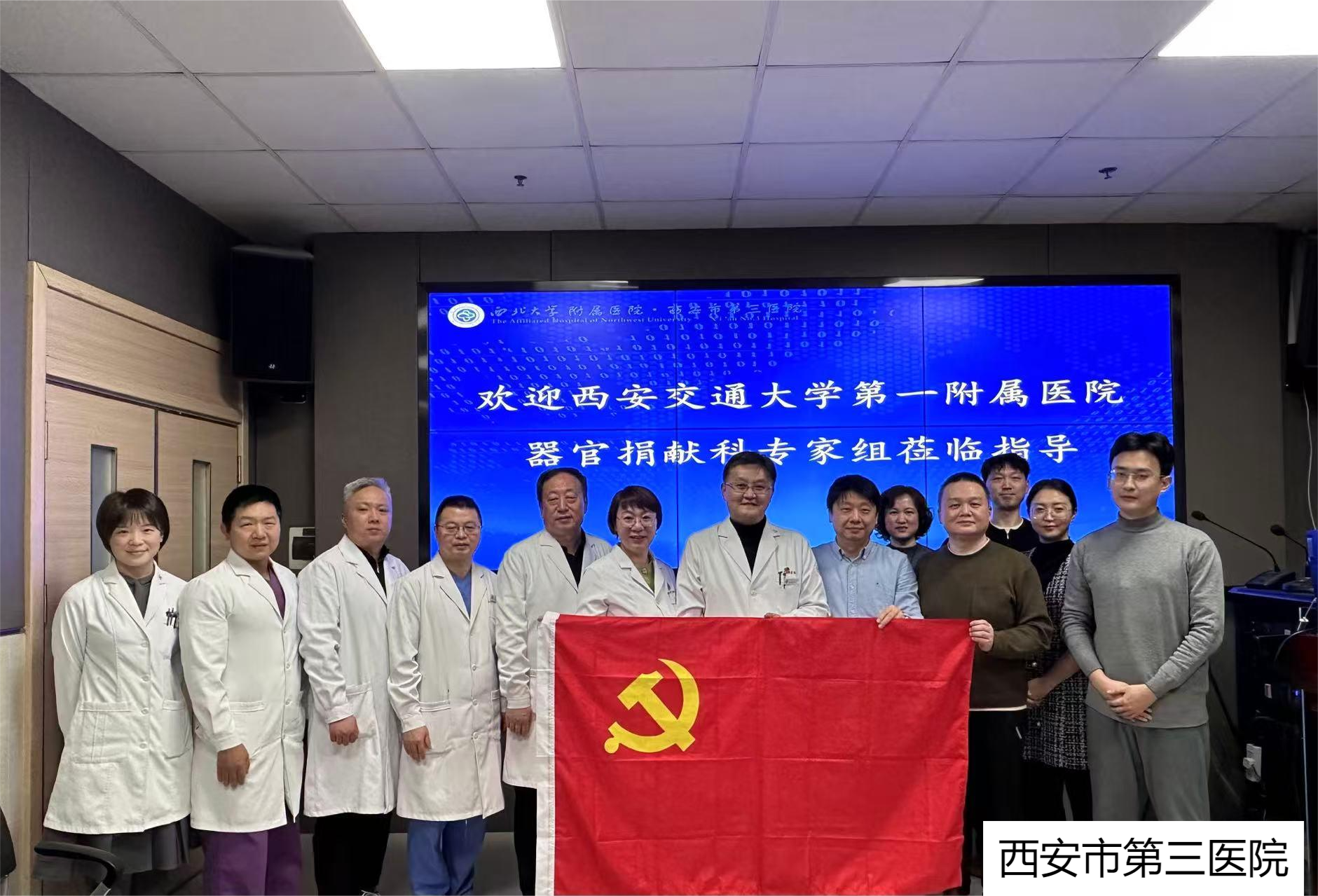 在医务部医政办公室副主任胡婷婷、事业发展与校友工作部部长李杨、健康医学科常务副主任缑永强、器官捐献科主任丁晨光的带领下,器官捐献科党支部党员代表及业务骨干先后前往西安市第三医院、三二〇一医院、汉中市人民医院、渭南市中心医院、渭南市华州区人民医院、商洛市中心医院、宝鸡市中心医院,与医院分管院长、医务部以及急诊、重症、神经等相关临床科室负责人进行座谈交流。