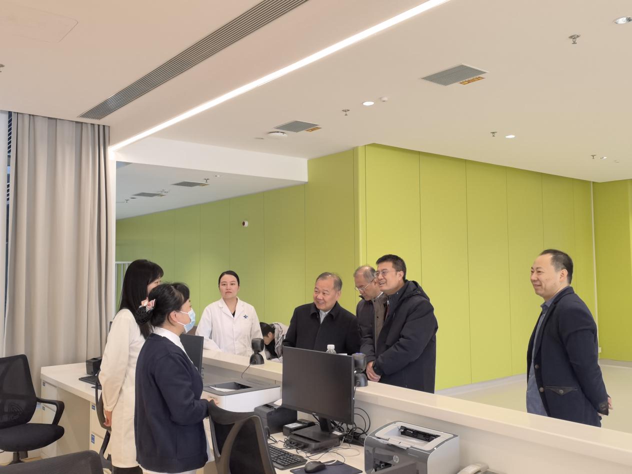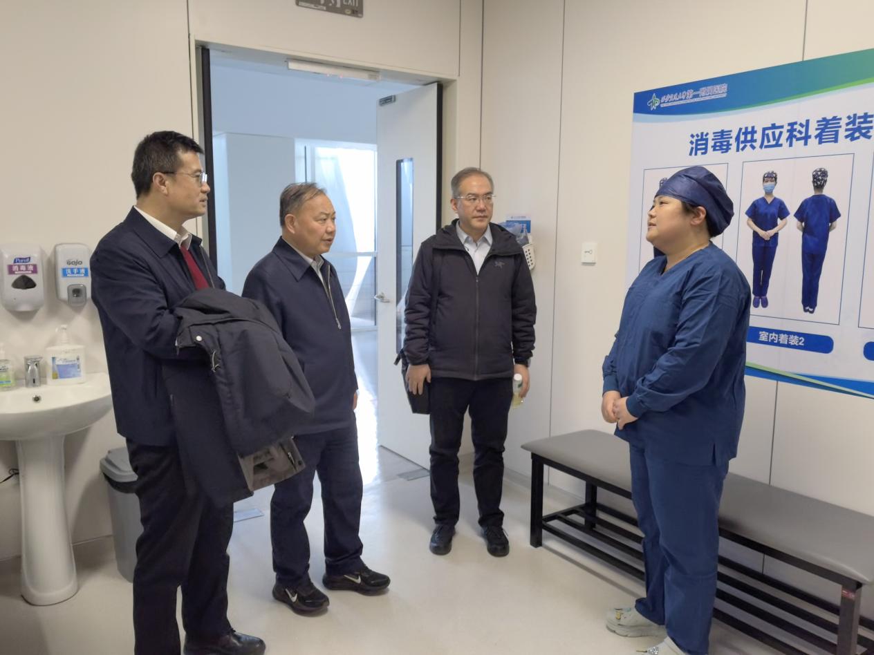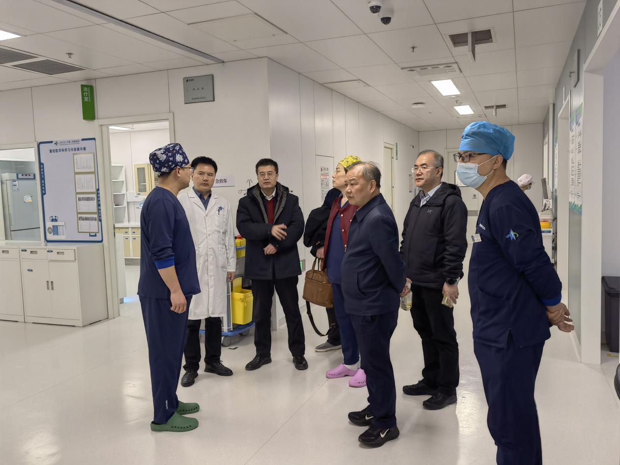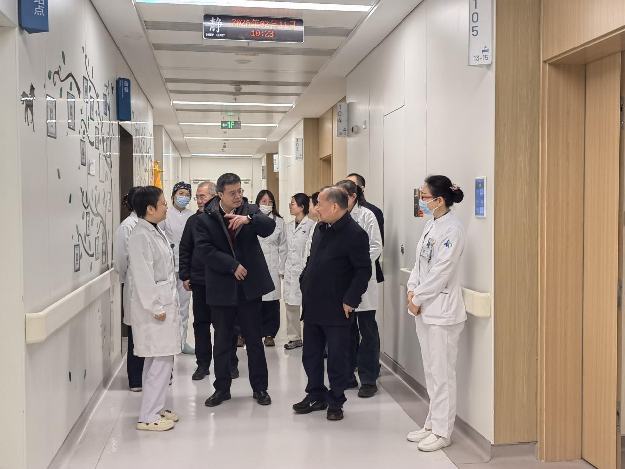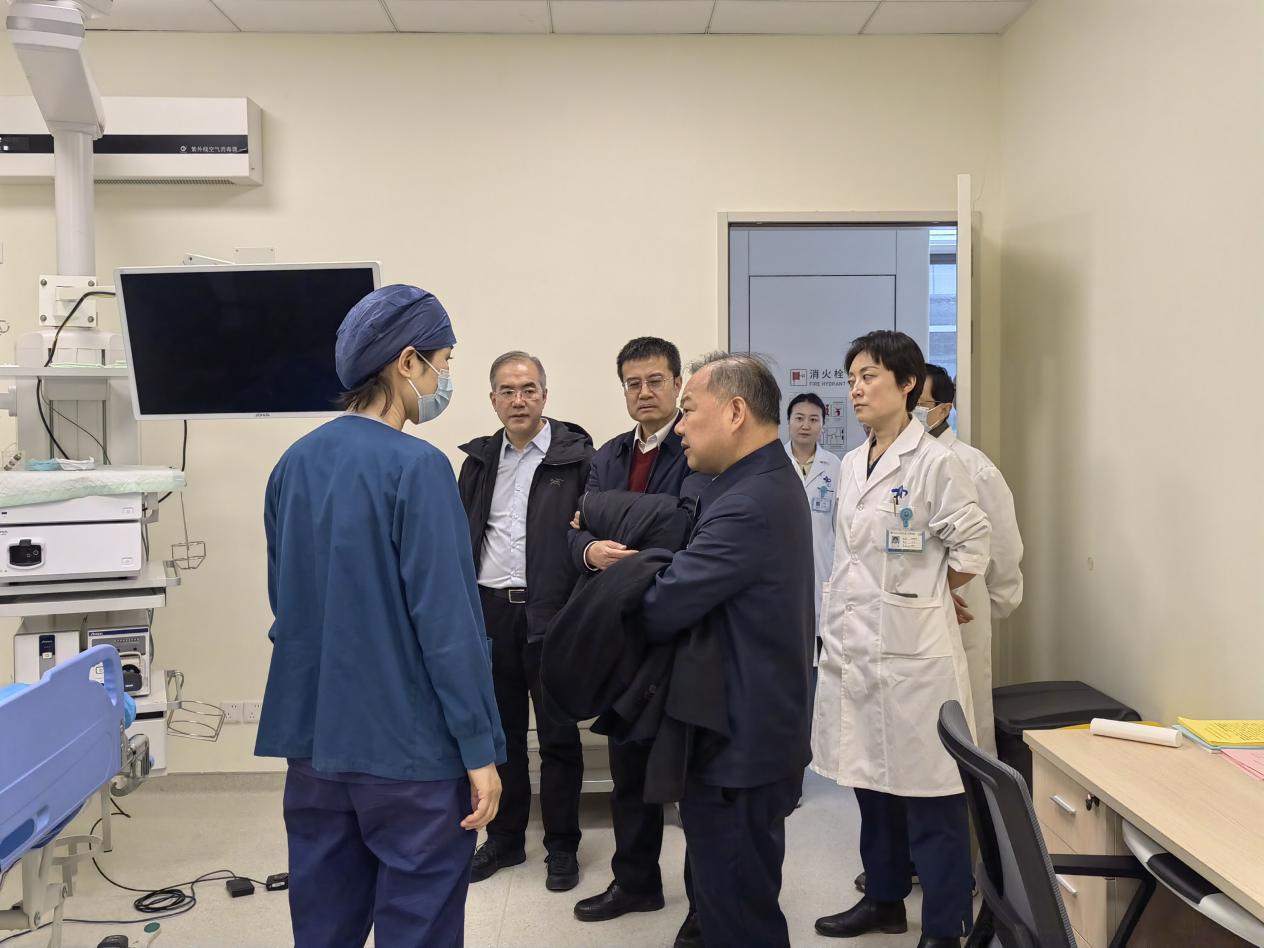 院领导一行先后深入肿瘤治疗中心、急诊抢救室、急诊病房、EICU、留观病房、胸痛中心、儿科、健康医学科、超声医学科、内镜中心、ICU、CCU、消毒供应中心等区域,通过现场查看、交流询问等方式,详细了解节日期间患者收治、人员配置、值班值守、设备运维、救治流程、诊疗成效及学科特色发展等情况。每到一处,都与一线医护人员亲切交流,仔细询问大家的工作强度、生活保障等情况,对医护人员在新春佳节坚守岗位、守护群众健康的奉献精神给予充分肯定和高度赞扬。同时叮嘱大家要在全力保障医疗服务的同时,合理调配休息时间,始终以饱满的精神状态、精湛的医疗技术为患者提供优质、高效、安全的医疗服务。