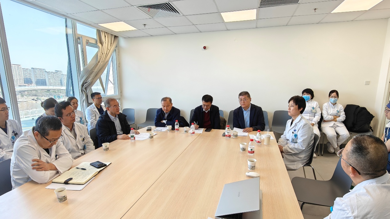 在神经外科督导调研期间,院领导们听取了神经外科张华主任的科室年度工作汇报,医务部副部长任洁通报了科室近期医疗质量情况及安全风险提示,副院长韩建峰在肯定科室发展成绩的同时,就学科医疗质量安全、学科发展规划等方面提出了明确要求。