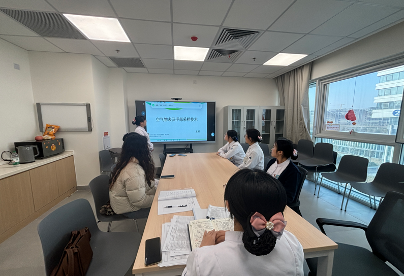 首先,孟丽主管护师分享了《空气、物表及手部采样技术》,通过PPT形式从医院环境、空气、物体表面、医务人员手的采样时间、采样方法、判定标准、标本运送等方面进行了图文并茂的详细讲解,让参会人员学习并深刻理解到了准确、规范采样的重要性,以便在今后的工作中用正确的方法做好科室环境卫生监测。