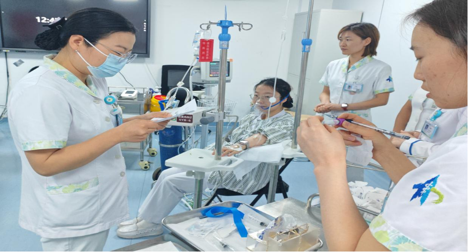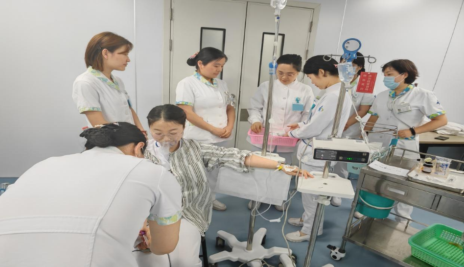 为全面提升护理人员应对输血反应的应急处置技能,确保患者输血过程中的安全,2025年4月29日午休时分,血液内科在东一楼6楼会议室举行了一场输血反应应急演练。此次演练在林欢护士长和姚建娜带教老师的精心组织下,全科护士积极参与。