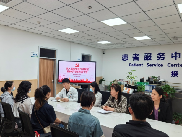 4月29日下午,患者服务中心党支部组织学习教育读书系列活动第一期,采取线上线下相结合的方式,原文研读相关材料,支部全体党员及科室职工参加学习,支部书记蒋玉梅主持会议。