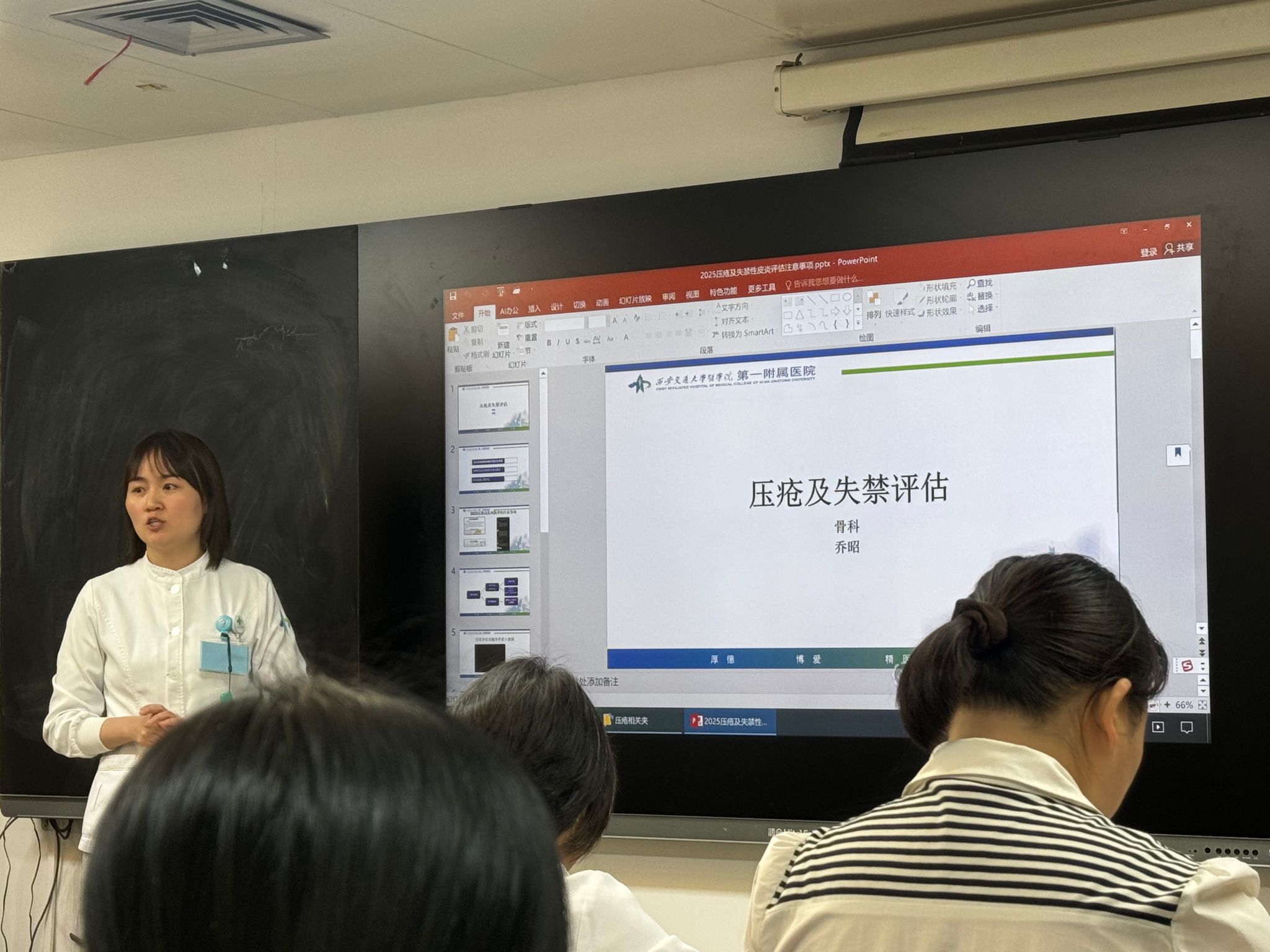 最后,由乔昭主管护理师分享了压力性损伤的分类及护理,重点强调了新改进的压力性损伤上报流程,使我们更加清楚了压力性损伤各期特征及临床护理要点,并且制定了从预防到治愈的阶梯策略,针对如何区分压力性损伤和失禁性皮炎也是进行了重点讲述,失禁性皮炎(IAD)护理需从皮肤保护、环境管理、营养支持等多维度综合干预,通过视频的方式使我们清楚掌握了失禁性皮炎的护理。
