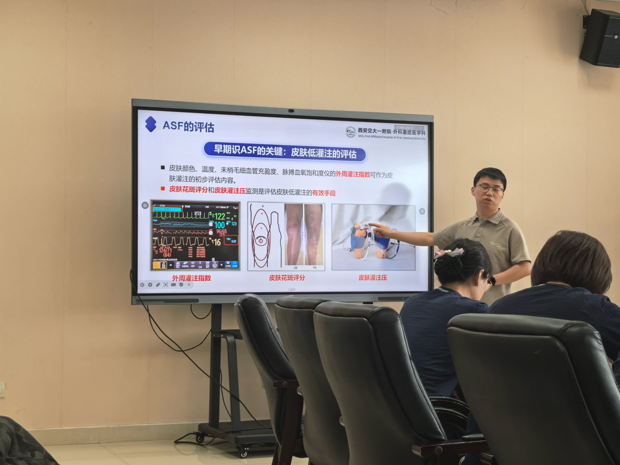 会议伊始,皮肤组组长李希主管护师与皮肤组成员刘春利主管护师,凭借近期查房工作中的典型案例,精心呈现了一场题为“一例脓毒性休克并发皮肤衰竭患者的护理查房”的深度分享。她们通过详尽的知识讲解、生动的病例汇报以及深入的问题讨论,为重症患者皮肤管理提供了一套标准化、规范化、科学化的解决方案。李希老师着重强调了压力性损伤与皮肤衰竭的鉴别要点,以及皮肤衰竭的早期识别关键,使在场护士受益匪浅。朱梓萌老师则详细分享了皮肤花斑评分标准,并从血流动力学监测、精细化液体管理等多个维度,深入剖析了皮肤衰竭的护理策略,让大家直观掌握了此类患者的护理管理精髓。
