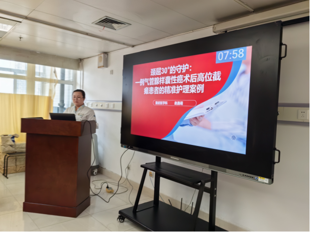 最后呼吸专业组组长冯思芳护士长进行总结发言,她本次比赛以案例为炬 、照专科前行,通过“案例擂台”搭建呼吸专业护理能力展示平台,呼吸护理团队将持续深化“临床-教学-科研”三位一体发展模式,将比赛激发的创新动能转化为守护患者呼吸通道的硬实力,为呼吸专业组高质量发蓄势聚力!