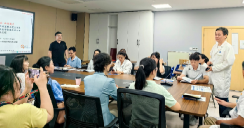 活动伊始,交大一附院医学影像科主任兼总支部书记杨健教授代表医学影像科一支部书记梁挺教授、二支部书记王亚蓉教授、三支部书记郭建新教授及参会的各位党员、师生进行致辞。他对陕师大现代教学技术教育部重点实验室一行的到来表示热烈欢迎,并回顾了既往双方在脑科学与医学影像交叉领域所取得的合作成果。杨主任表示,多学科交叉是未来科技创新的重要方向,期待以此次党建共建为契机,进一步推动双方在科研联合攻关、人才协同培养等方面的深度合作。他还介绍了影像科参会的主要科研与临床骨干,表达了全力支持共建工作的积极意愿。