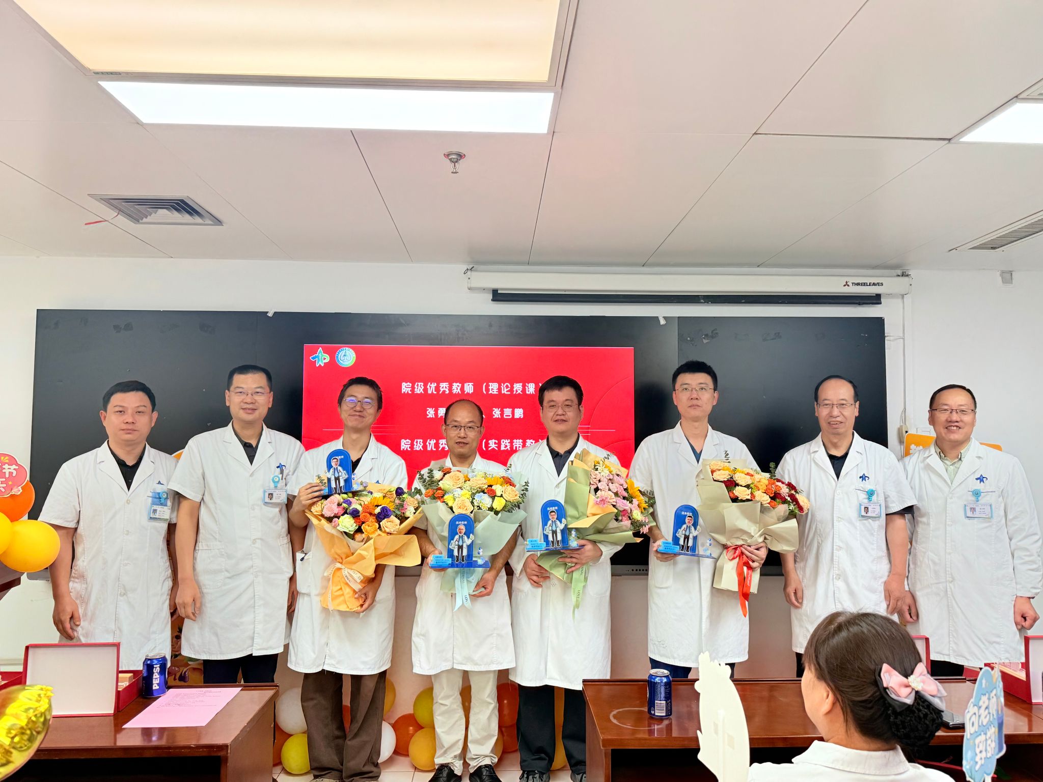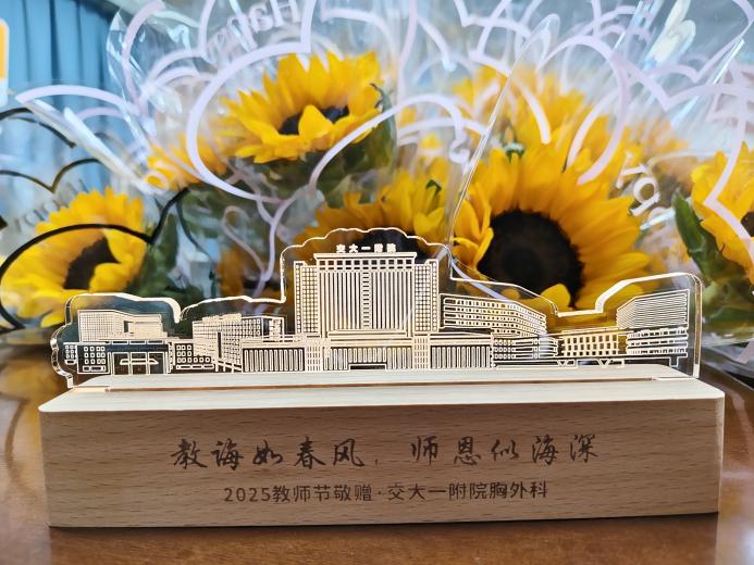 表彰先进树榜样,在西安交通大学第一附属医院2024-2025 学年教学先进集体及个人表彰中,胸外科荣获优秀教学单元,张广健主任获得院级优秀本科生导师奖,张勇、高山、张言鹏获优秀教师(理论授课),张伯翔获优秀教师奖(实践带教);高山获得校级上半年教师授课竞赛二等奖;科室再次向获奖的各位老师表示感谢和祝贺。同时为长期负责护理实习生带教的杜娇娇、吕秀娜带教组长表示感谢,为他们定制了优秀教师形象摆台及鲜花,以肯定他们在教学和带教工作中的优秀表现。
