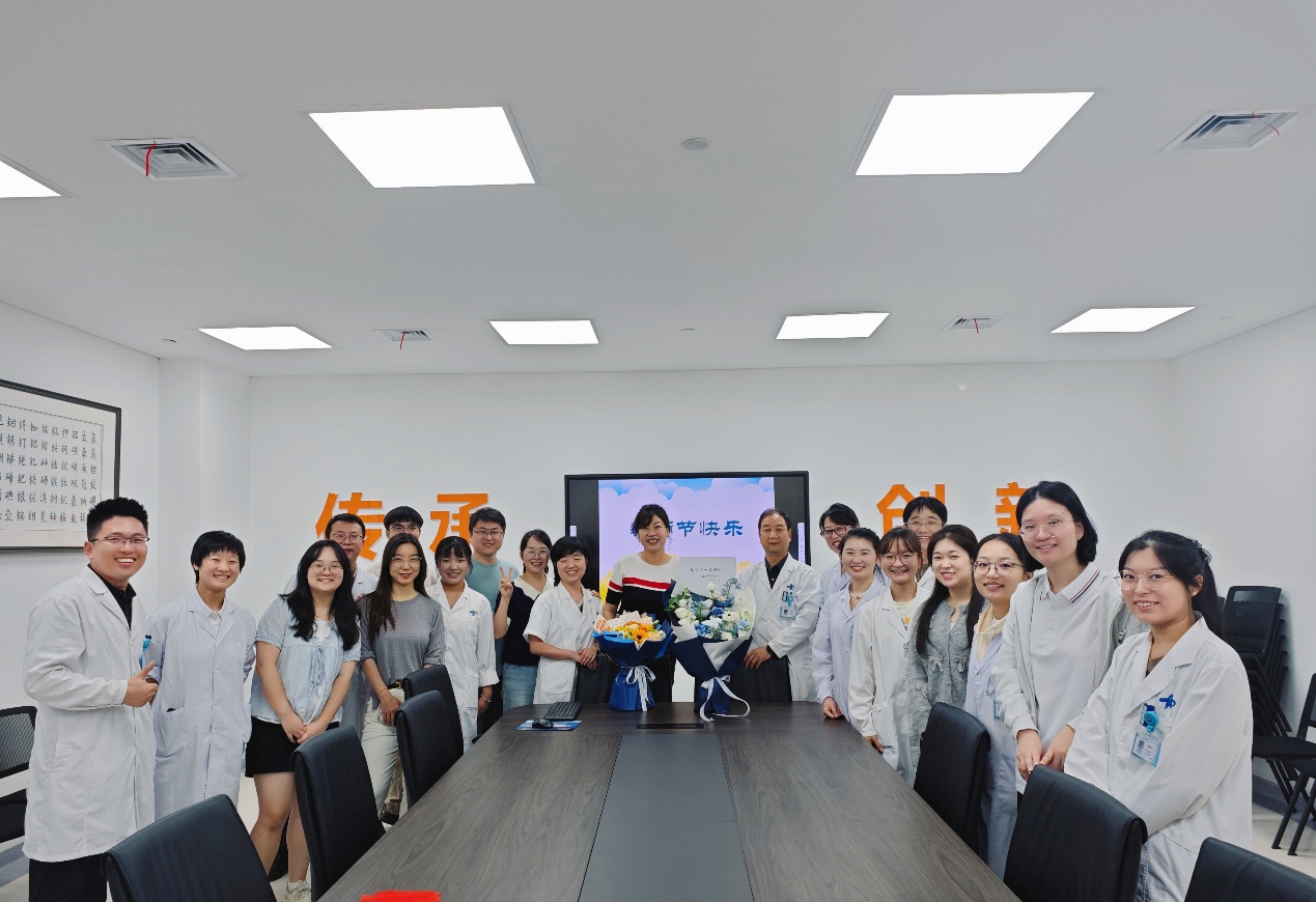 “我和我的祖国,一刻也不能分割……”在支部书记杨爱民教书的带领下,全体师生齐声高唱,悠扬旋律回荡在科室走廊,爱国之情在每人胸中升腾。随后,支部学生代表为科室博导、硕导们送上精心准备的节日祝福,既彰显了学生对导师辛勤育人的感恩之情,也凝聚了科室师生间的深厚情谊。