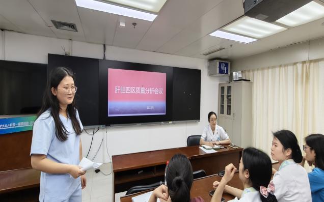 2025年9月15日中午,肝胆外科四病区召开了本月护理质量分析会,旨在以案例为教材,深入剖析根源,系统查找漏洞,全面反思并总结工作中遇到的问题,共同探讨改进措施,避免类似事件再次发生。会议由病区护士长张曼主持。