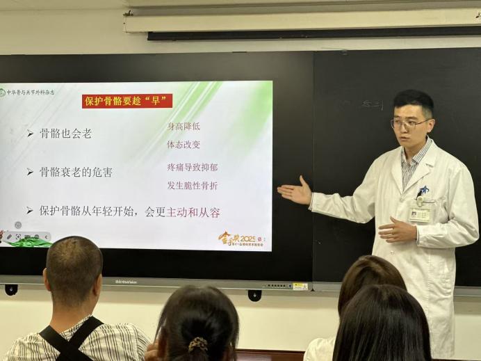 响应国家及医院号召,骨科在全国科普月活动期间,于2025年9月15日下午,由骨科李涛医生担任主讲,分别在交大一附院总院区及陆港院区开展了一场精彩的“双院区联动”健康科普活动。此次活动以“了解骨质疏松症”为主题,向骨科患者及家属科普骨质疏松防治相关知识,获得热烈反响。