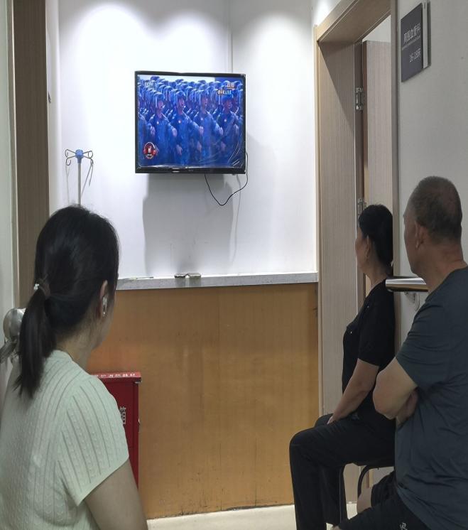 最让我难以忘怀的就是赶上了我国纪念中国人民抗日战争暨世界反法西斯战争胜利80周年阅兵仪式,原本安静的病房,因这场特殊的“集体观看”变得格外温暖,也让我对护理工作与家国情怀有了更深刻的感悟。那天清晨,我们就像往常一样推着治疗车穿梭在病房,准备为患者进行晨间护理,走廊里响起了整齐划一的声音,“是阅兵仪式!”我的内心无比的振奋,每到一个床旁,我就会对在观看的患者及家属送去赞扬,一位家属还幽默地说:“干慢点,咱们一起看。”民族自豪感如潮涌般撞上心尖,根本压不住,顺着眼眶、伴着热血,不由自主地满溢开来。伴着庄严的国歌声,我们护理人员实施操作更来劲了,有条不紊地进行各种操作。忙碌的工作告一段落,在各位患者及家属的提议下,我们征求了护士长的意见,打开了走廊里的电视机,其实我们医护人员也是十分想一饱眼福,可惜是在工作不能打开手机,但这下可以光明正大观赏了。直播开始了,我们和家属包括患者,搬个凳子坐在走廊两边,整齐划一地为祖国鼓掌呐喊,为祖国感到骄傲。这场病房里的阅兵观看,让我与患者之间多了一份共同的情感联结,也让我明白,家国情怀从来不是遥不可及的口号,它藏在每一个普通人的心中,藏在病房里的每一次感动里。作为一名护理实习生,这次经历让我更加坚定了自己的职业选择。未来,我不仅要提升专业技能,用心护理每一位患者,更要带着这份家国情怀,在平凡的岗位上传递温暖与力量,用实际行动诠释“敬佑生命、救死扶伤、甘于奉献、大爱无疆”的职业精神,为患者的健康、为国家的医疗卫生事业贡献自己的一份力量。