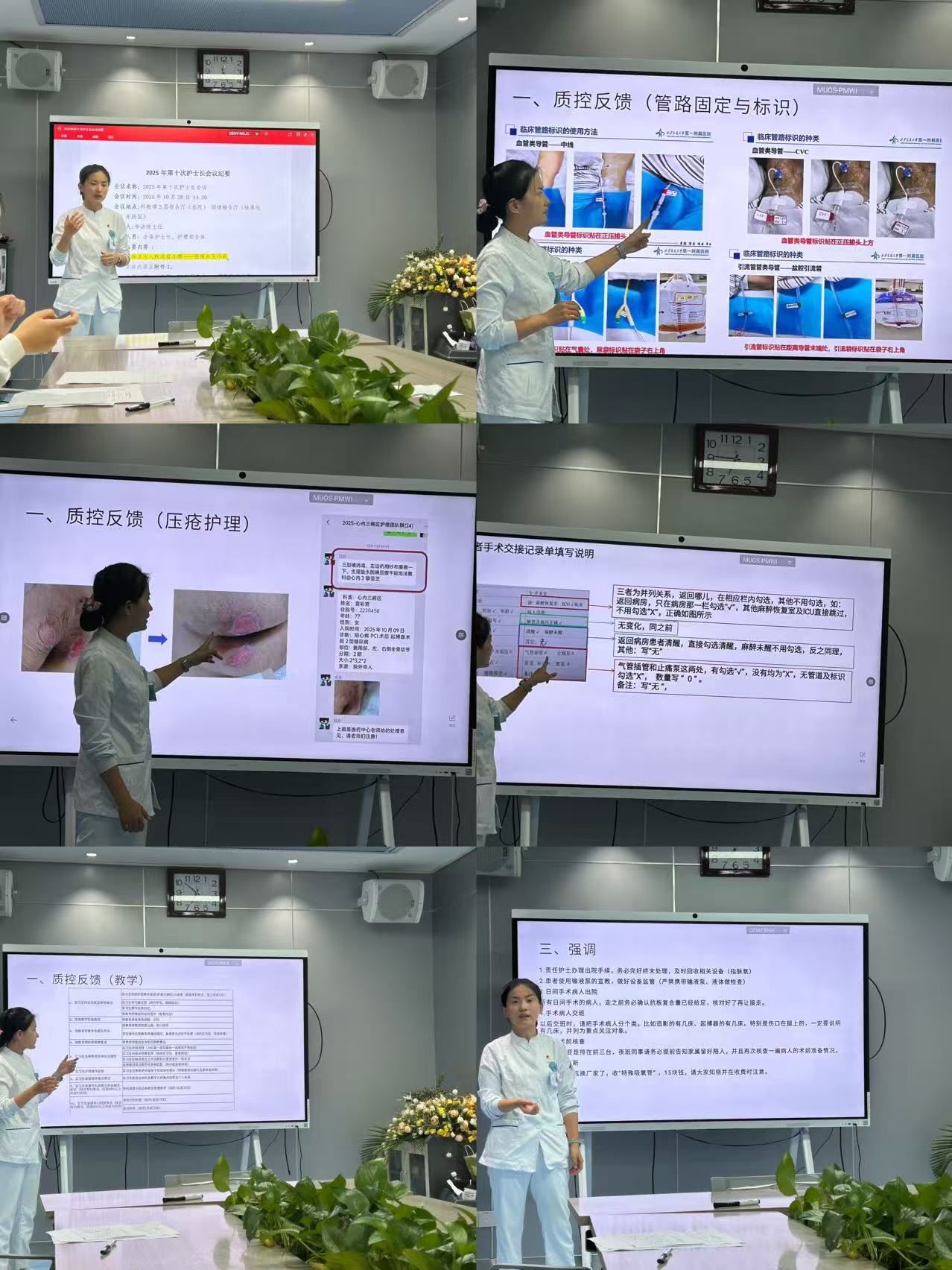 为持续改进护理质量,会议通报了十月各护理组质控检查结果,直击问题、剖析根因,并部署针对性整改措施: