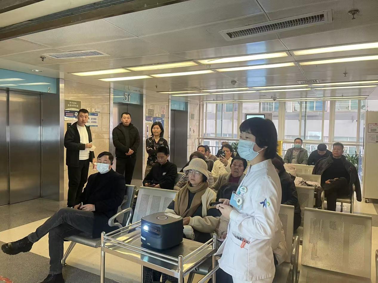 活动于早上8时准时开始,吸引了众多住院患者、陪护家属积极参与。心血管内科4病区何小琴护士作为主讲,结合多幅图片,用通俗易懂的语言深入浅出地讲解了冠心病的发病常见危险因素、介入治疗(如冠状动脉造影、支架植入术)的适应症与操作流程,并重点强调了术后用药规范、生活方式调整及长期随访的重要性。