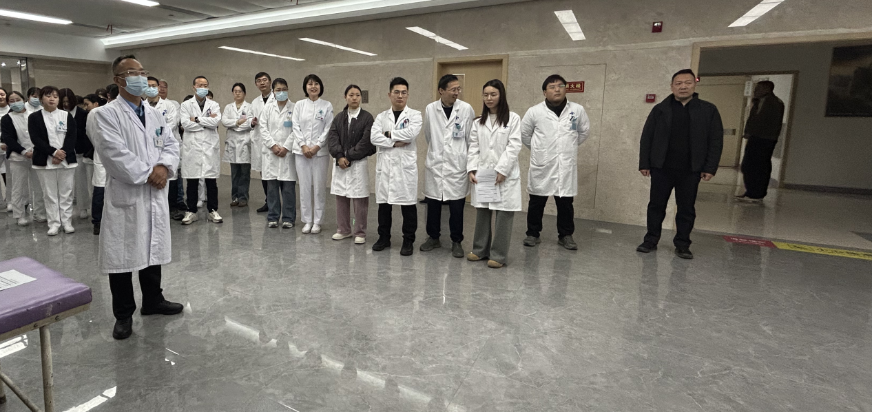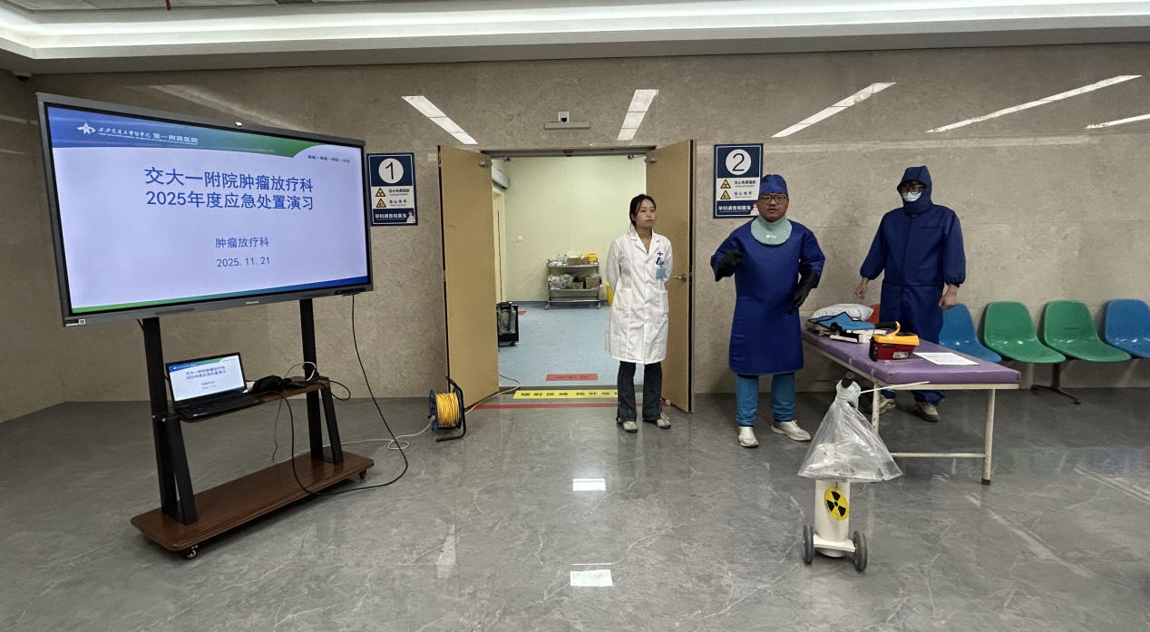 2025年11月21日早,肿瘤放疗科在外科大楼负一层后装治疗区域举办年度应急处置演习,保卫部、基建规划办公室、放射管理办公室等多部门派代表列席演习现场。