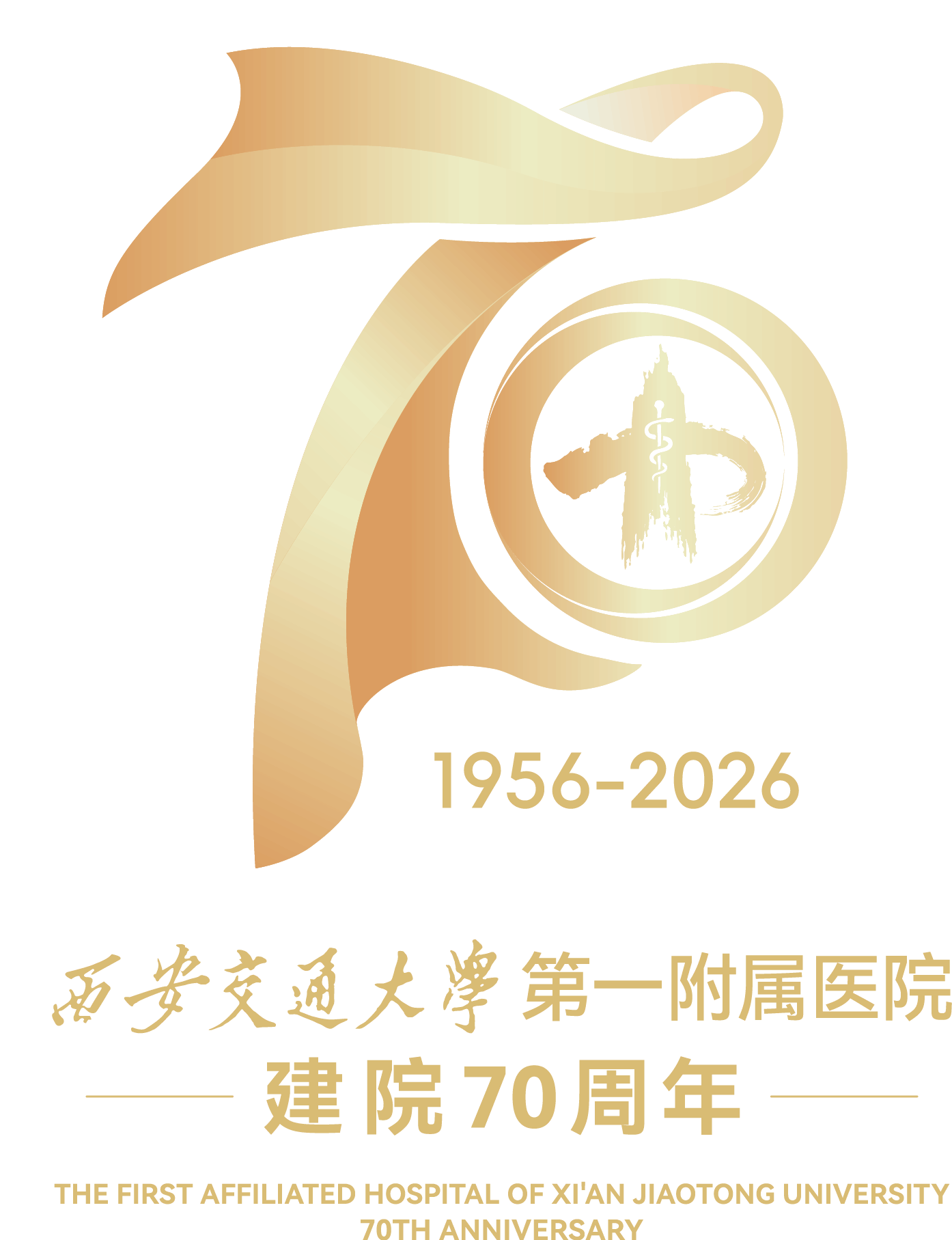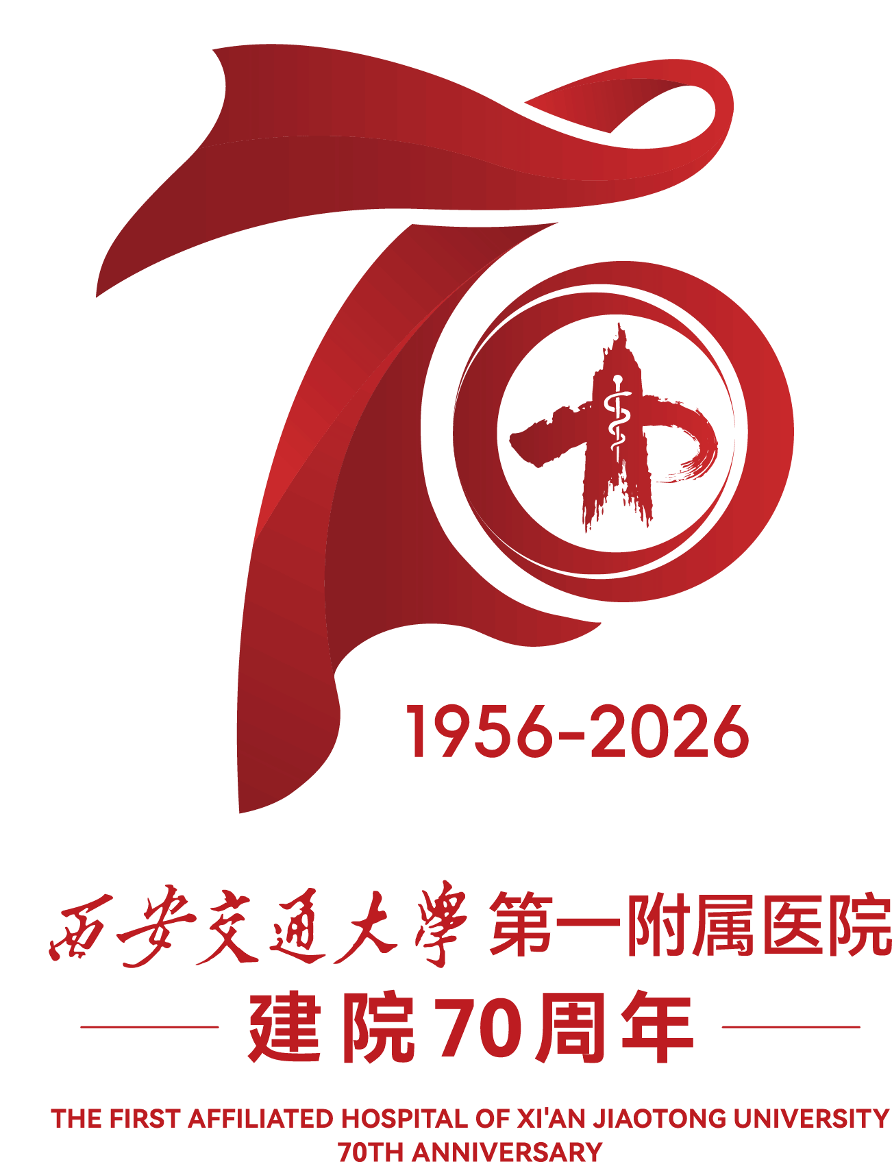 标志下方清晰标注“1956-2026”时间跨度,字字镌刻七十载峥嵘岁月,完整呼应医院波澜壮阔的发展历程。