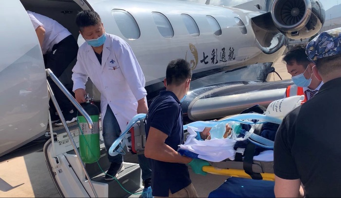 图24 西北首例ECMO辅助的危重症患者固定翼飞机转运 图25 “急救5分钟生命链”转运危重患者