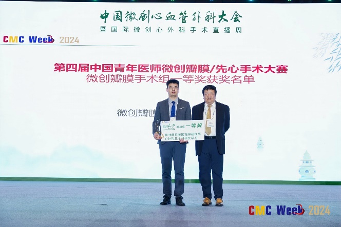 图10 闫炀主任团队正实施微创经肋间切口David手术 图11 李静医生获中国青年医师微创瓣膜手术大赛一等奖