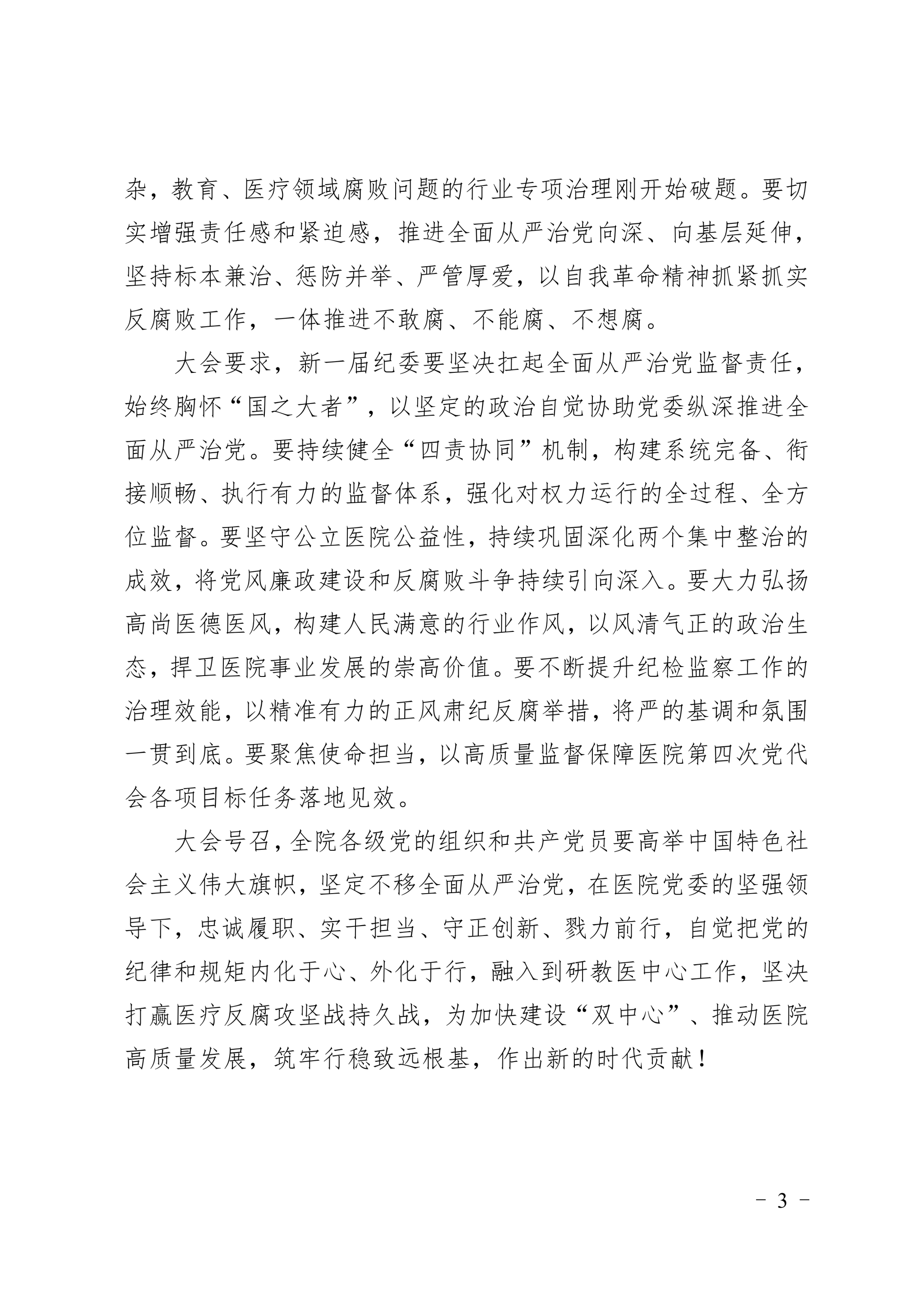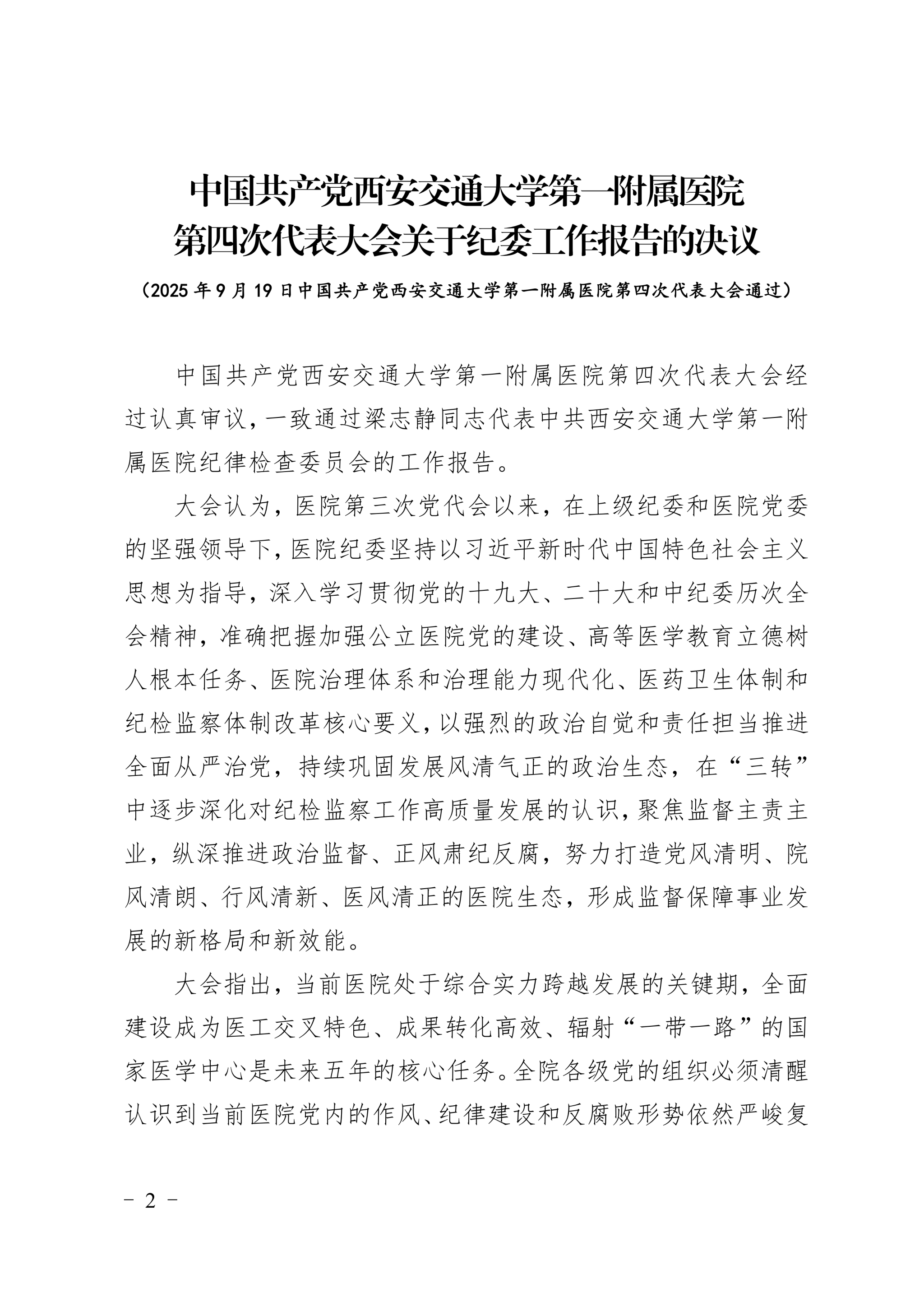 中国共产党西安交通大学第一附属医院第四次代表大会关于纪委工作报告的决议
