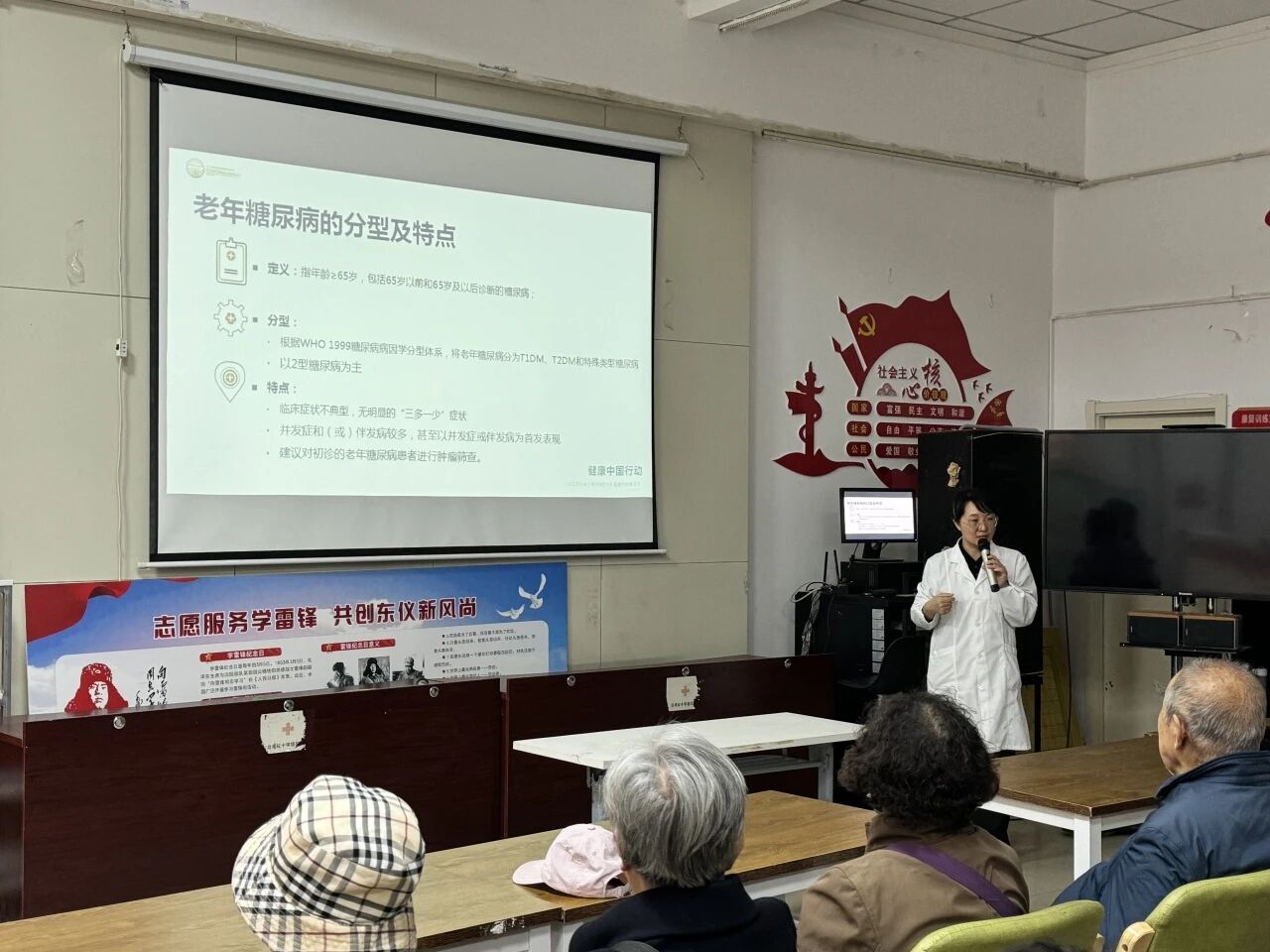 庞瑛护士长就《老年糖尿病低血糖的早期识别及处理》开展专题讲座,结合典型案例生动演示了预防与应急处理方法,提升了居民的自我保护能力。