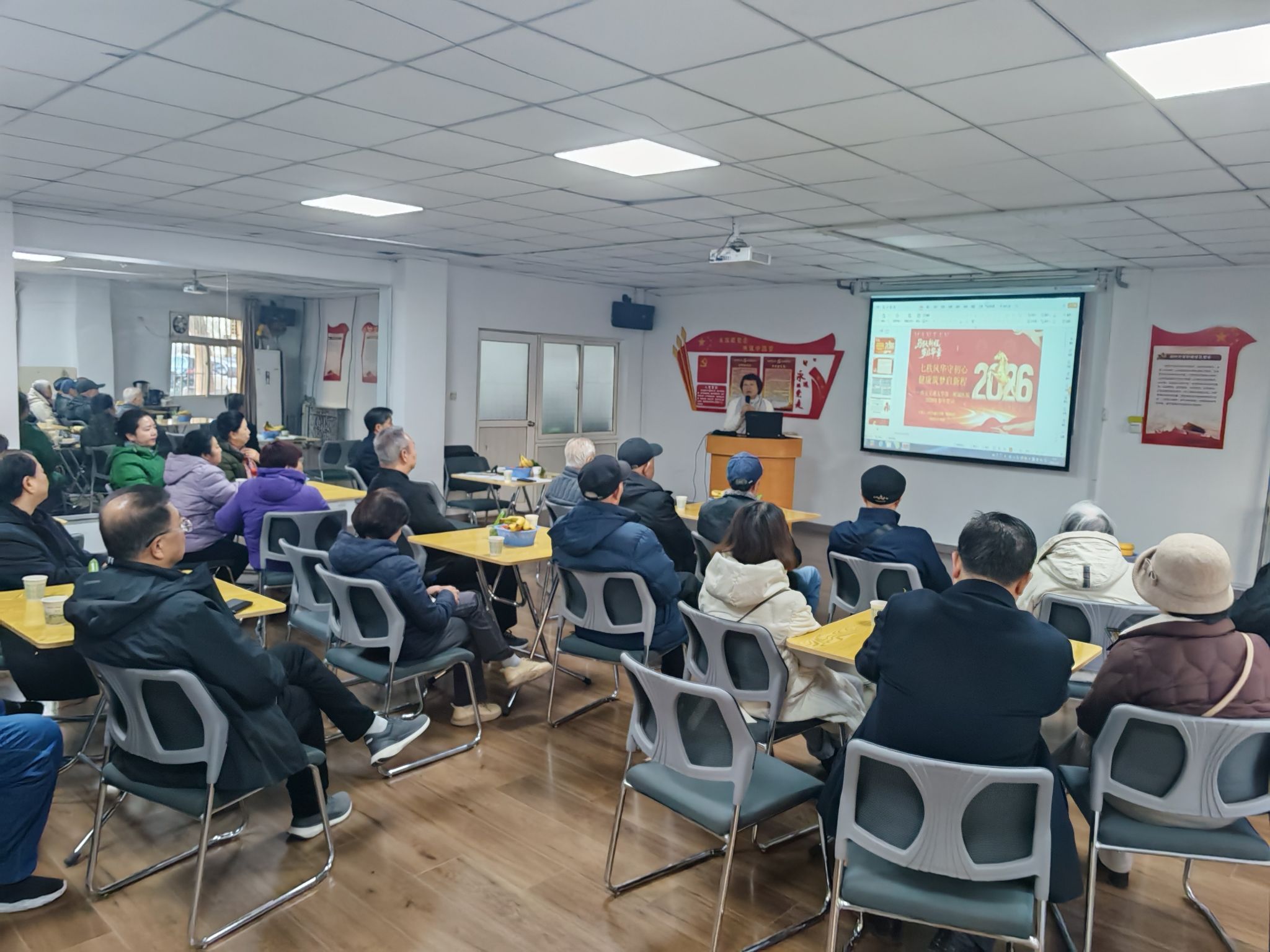 韩菊组织员首先向所有离退休老同志表示新春的问候,重点向离退休老同志们传达了刚刚召开的2026年院领导班子务虚会会议内容,系统总结了2025年医院在学科建设提质增效、人才队伍集聚壮大、医疗服务换挡升级、质量安全筑牢底线、科研成果转化突破、教育教学立德树人、后勤保障服务中心、党建引领事业发展等重点领域取得的突出成就,深入分析了发展中存在的问题与挑战,重点聚焦2026年工作谋划。