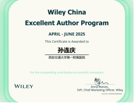 近日,国际知名出版社Wiley发布了2025年第二季度“Wiley威立中国高贡献作者奖”。张哲副主任医师(第一作者)和孙连庆主任医师(通讯作者)在《FEBS-openbio》期刊发表题为“Preparation and characterization of renal cell peptides from fetal rats for their antitumor activity”的研究论文,下载量在该期刊中国作者2025年第二季度发表文章中位列前茅。基于此,被授予“Wiley威立中国高贡献作者奖“。该文发表后即受到全球学者广泛关注,在发表后三个月内下载量持续攀升,下载量名列该期刊2025年第二季度同期中国作者发表文章前茅。该奖项综合考量文章发表后3个月内的全文下载量,从每本期刊中遴选出下载量最高的数篇由中国作者发表的论文,并对所有来自中国大陆机构的作者予以表彰,以感谢作者为科技进步做出的突出贡献。