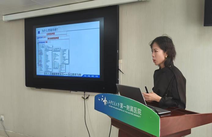 培训活动由教学部李雁部长主持。医学部人才培养处卢阳老师围绕我校医学部同等学力申请博士、硕士学位预申请资格注册工作的相关政策进行了详细解读。教学督导专家马清涌教授结合自身科研成长经历和研究生培养经验,分享了当前医学研究生面临的痛点问题及解决办法。科技部科研管理中心副主任兼综合与计划办公室李光月主任以《规范科学研究,筑牢医学研究科研起航基石》为题,分享了科研项目申请、科研规划方面的经验,并着重强调了科研诚信。教学部图书馆徐静老师以《AI工具与数据库双轮驱动:为医学研究生量身打造的高效选题导航》为题,介绍了文献检索中常用的数据库,并紧跟时代潮流,引用案例生动讲述了如何用人工智能和数据库辅助科研选题。